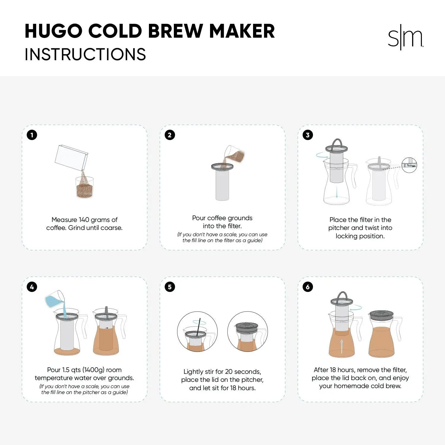 Easy to Use & Store: Designed to make fresh, homemade cold brew in a few easy steps. Easily stores in most refrigerator doors, and will stay fresh for up to two weeks in the fridge.Reusable Filter: Stainless steel filter is reusable and designed to keep grounds out of your coffee.48oz (1.5 Quart) Capacity: Brews up to six 8-ounce servings of cold brew.