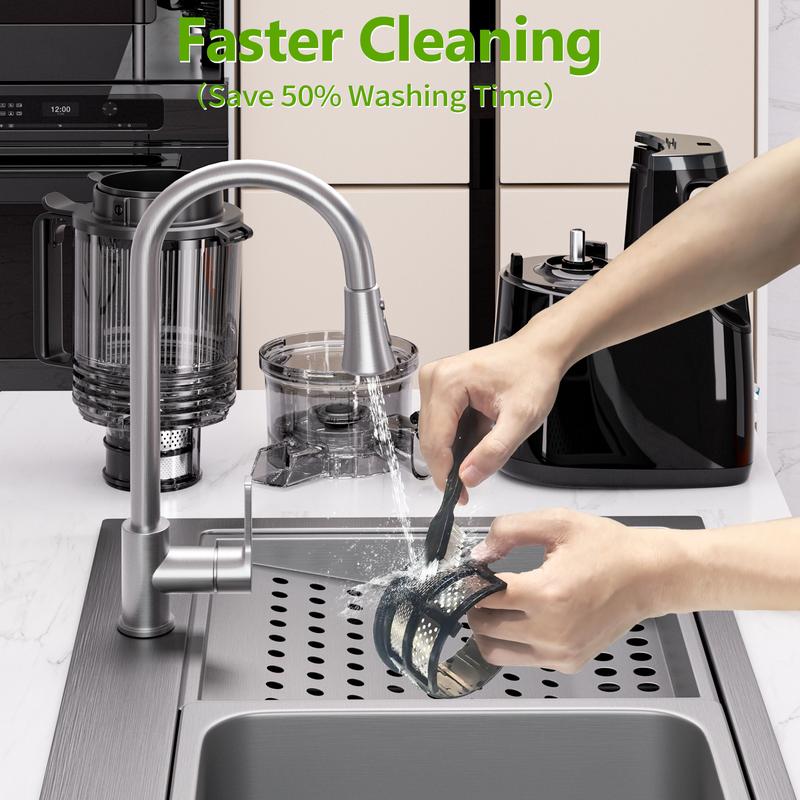 ·【Auto-Slow Juicer Cold Press】 Food-grade corrosion-resistant rotary drills with the 55rpm low-speed squeezing and grinding technology for the fruit juicer machine, it effectively avoids heat generation and oxidation.