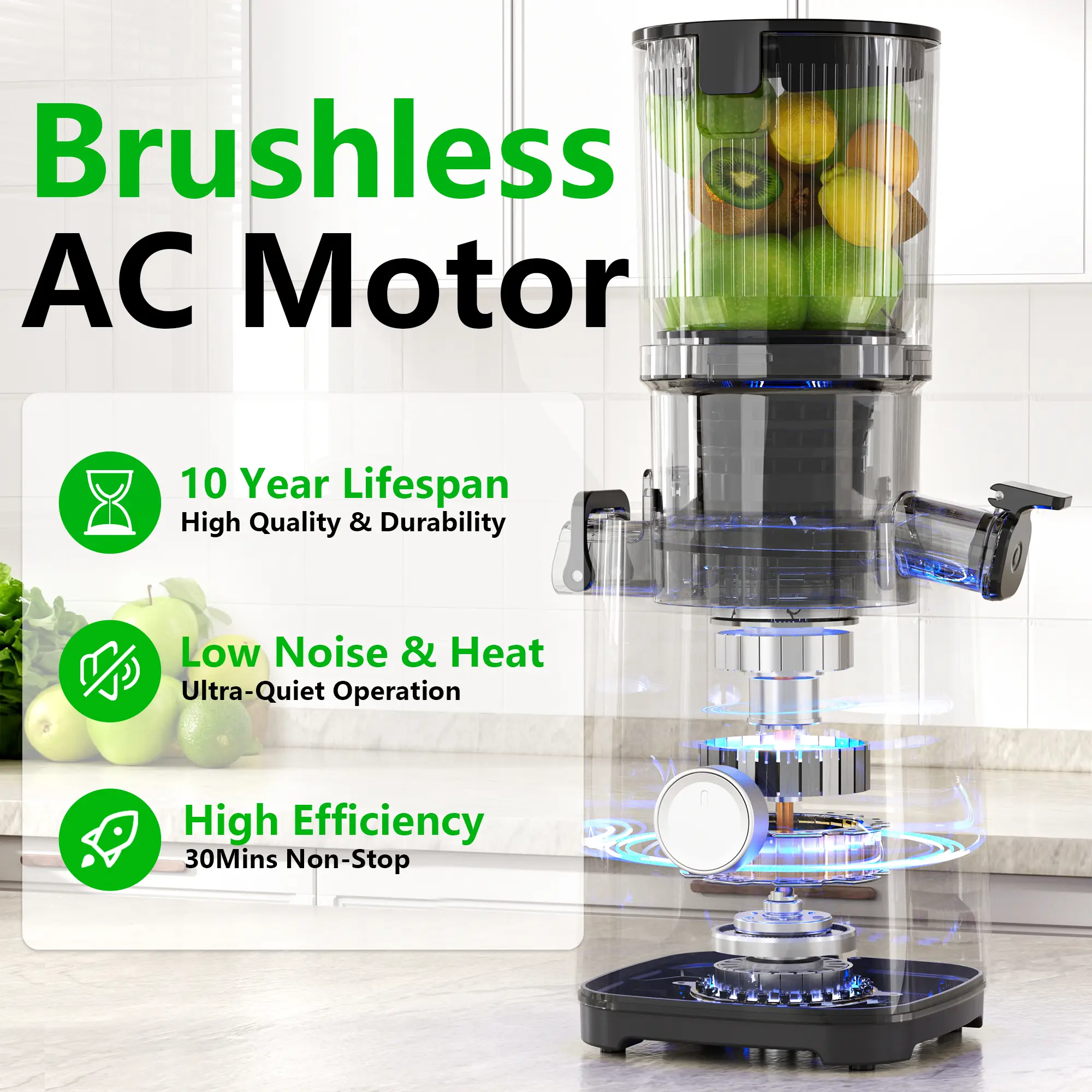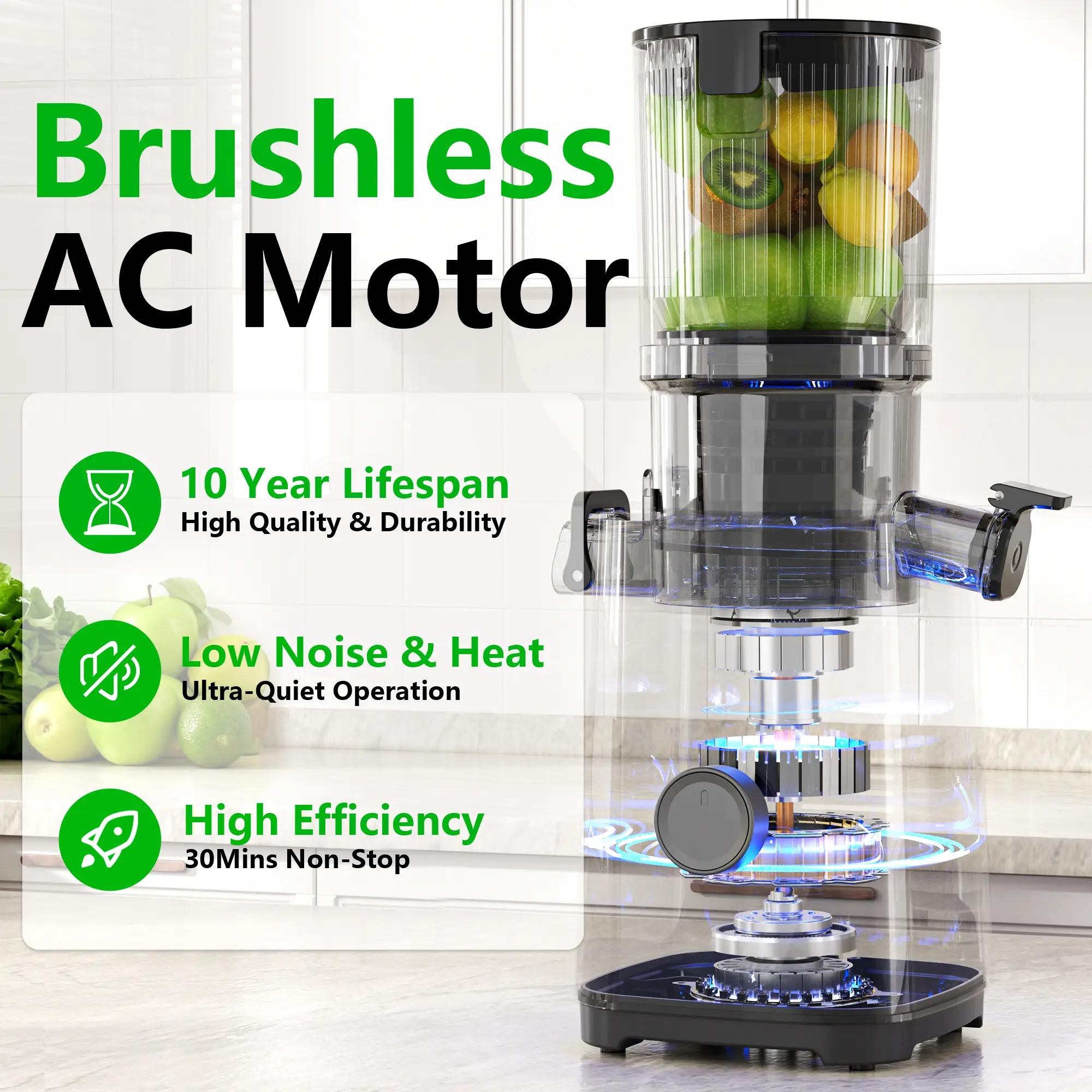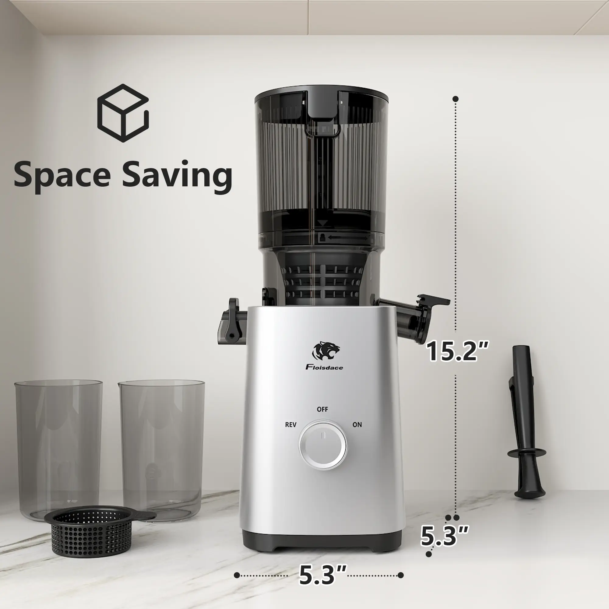 Juicer Machines, Cold Press Juicer with 5.3" Extra Large Feed Chute and Powerful AC Brushless Motor Fit Whole Fruits & Vegetable, High Juice Yield, BPA Free, Extra one Replace juicer strainer