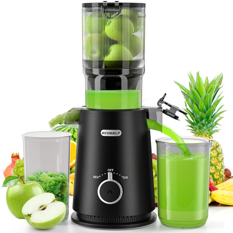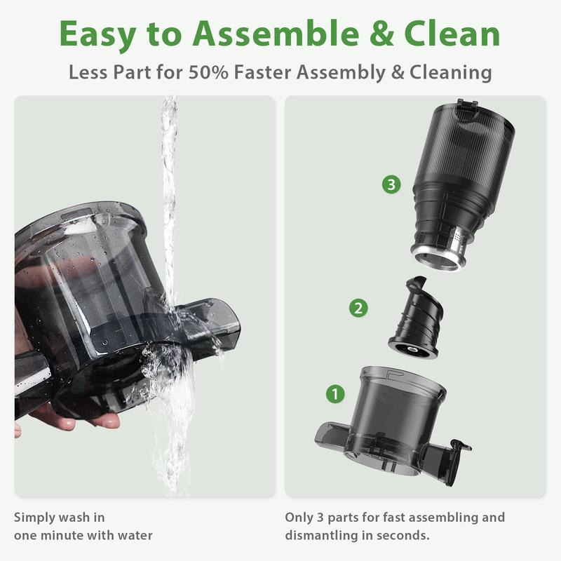 【Easy to Assemble & Clean】Our ECOSELF masticating juicier features a hopper & screen integrated design, which can be easily assembled and disassembled in minutes, and is also easy to clean. Except for the motor base, other parts can be quickly cleaned with water, with an included brush for a hassle-free cleanse.