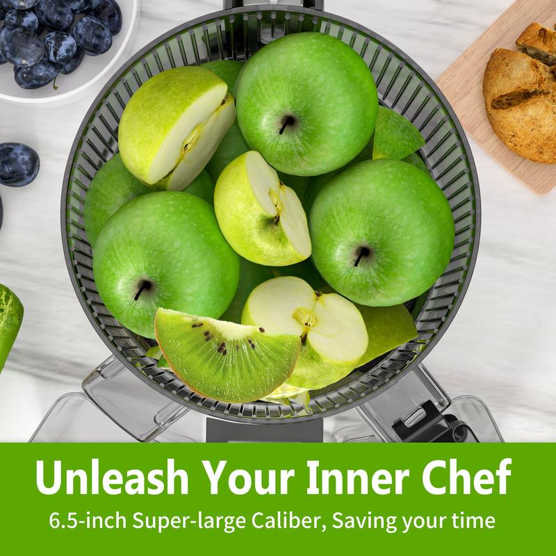 【 Large Feed Chute & Capacity 】5-inch chute juices whole fruits/veggies, with a 50oz hopper for max efficiency.