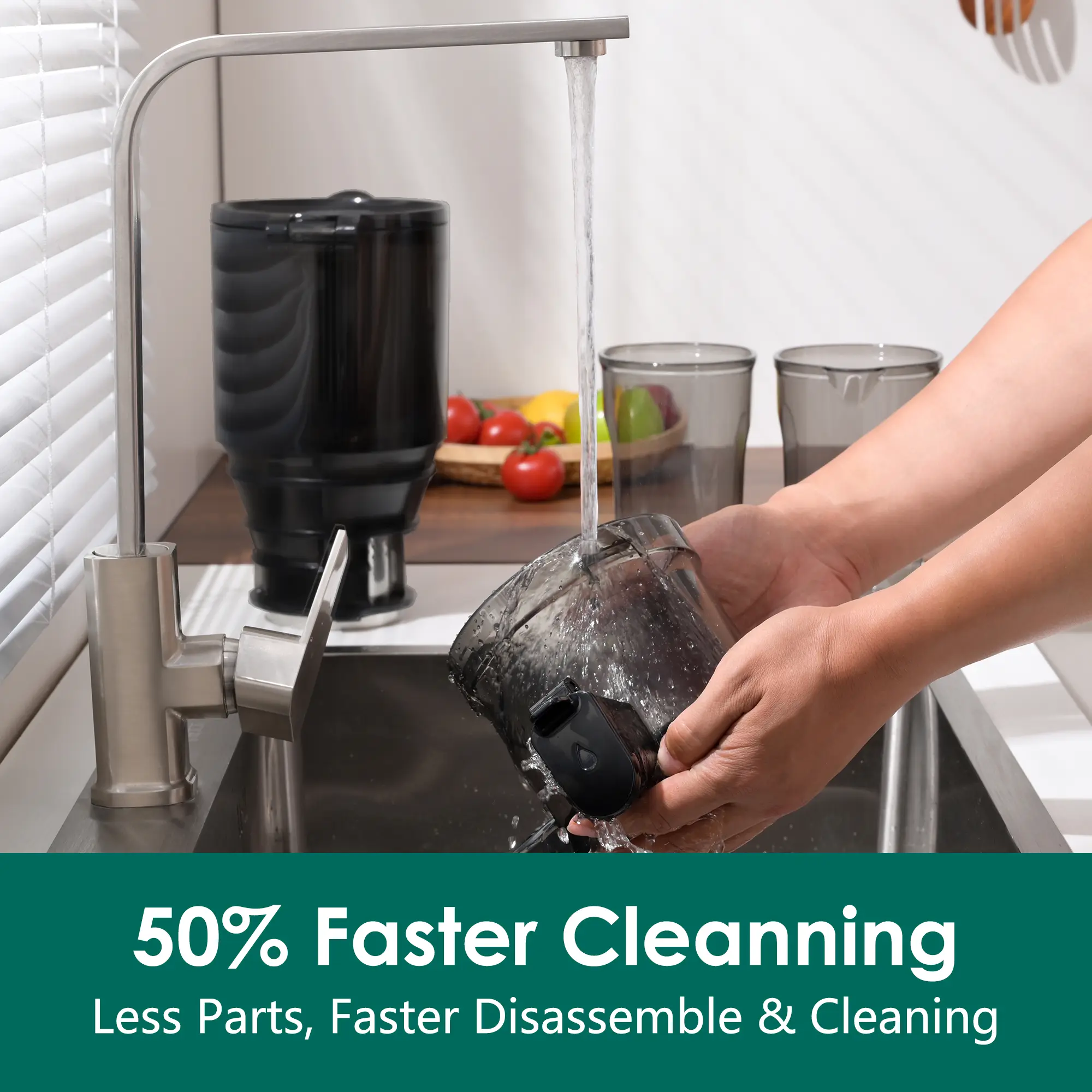 ·Simple Operation & Reverse Function: Just turn the button after inserting your fruits and vegetables and closing the lid to produce rich juice. If a blockage occurs during the juicing process, simply flip the reverse button to rotate in the opposite direction and clear any obstruction, ensuring uninterrupted juicing.