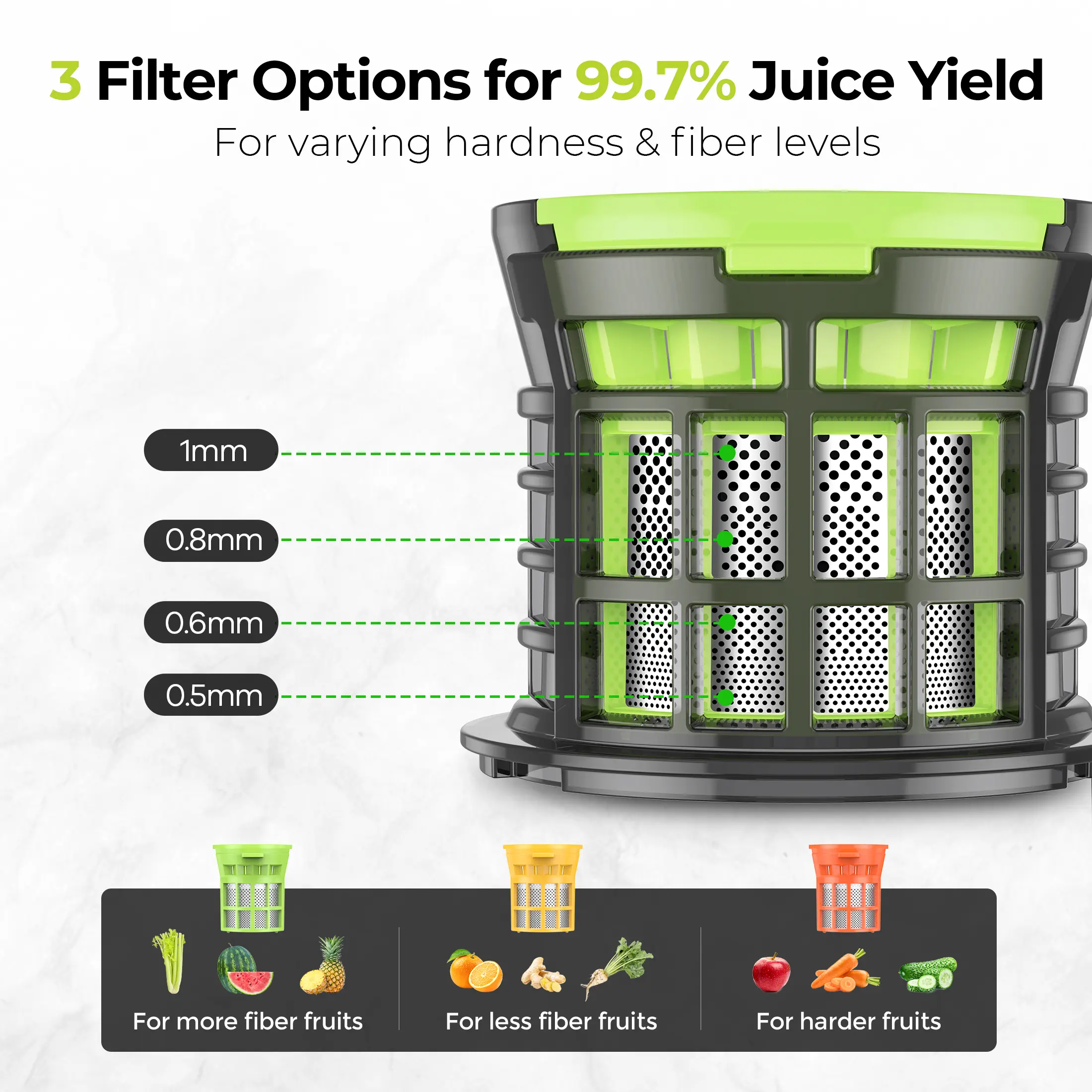 ·3 Detachable Filters: Ganiza juicer features 3 detachable filters for fibrous fruits and vegetables. Extract nutrients from apples, carrots, oranges, watermelon, ginger, celery, and tomatoes effortlessly. 🍎🥕🍊