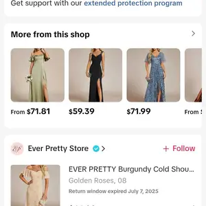 WOULD GIVE 0 STARS IF I COULD. I ordered 2 of the same dress because of the reviews about the sizing on June 18th. They were delivered June 23rd. I tried them on a few days later and the larger one fit. I tried to return the dress that didn't fit and it said as of July 7th which was only 14 days after ordering that my return window ended. Umm I'm sorry what? Tiktok Shops return policy is 30 days from delivery it hadn't even been 3 weeks from the day I ordered. And I have messaged this shop twice and they are not replying and Tiktok Shop says there is nothing they can do. TOTAL B*****IT!
