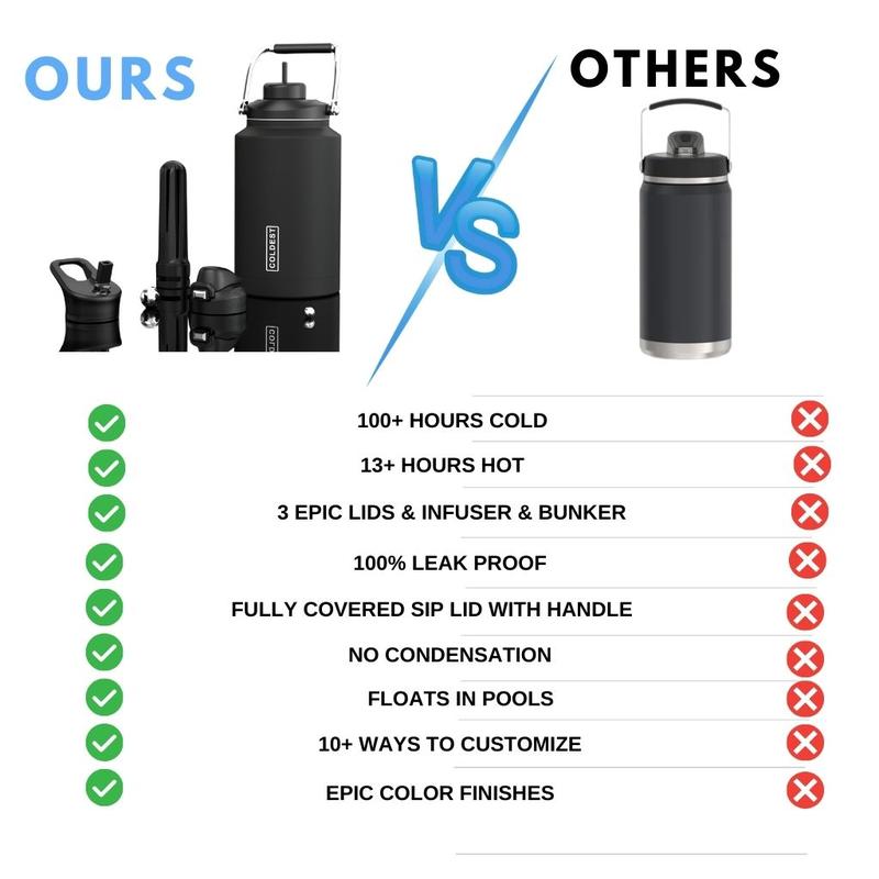 Coldest bottles exceed the competitions bottles in every category. Ice cold for 2 days & absolutely no chance of leaks or bugs getting in. The designs are beautiful, artistic and rich colors. The prices can’t be beat and delivery is reliable. I LOVE Coldest in every way!