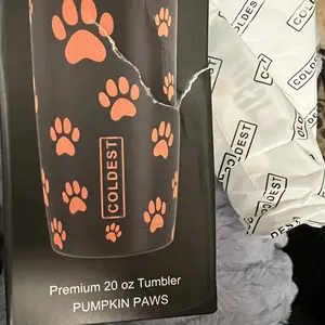 Love this cup. The orange paw prints glow in the dark. I had to return the first on I got because it was smashed on one side. They sent the cup immediately without recieving the smashed cup which was nice.