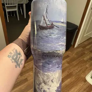 Ghost is perfect the glow is very bright. Beautiful design, Love the choice of 3 different lids my favorite is the coffee lid & it locks keeps my grandkids from getting in it or spilling it. Leak proof, Came in perfect condition. Love coldest 10/10