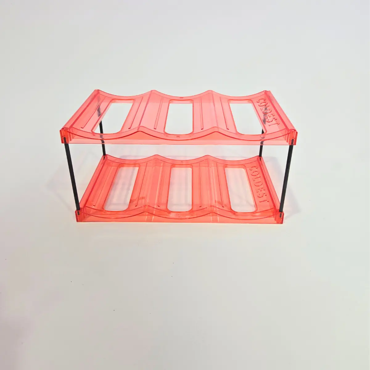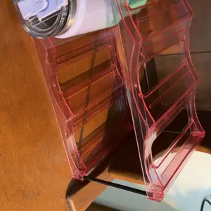Love the color! It looks way better in person, nice see-through red. Easy to build, no instructions given or needed. Very sturdy, and simple to store my cups on. Love that it comes with extra sticks to build up the towers with a different set
