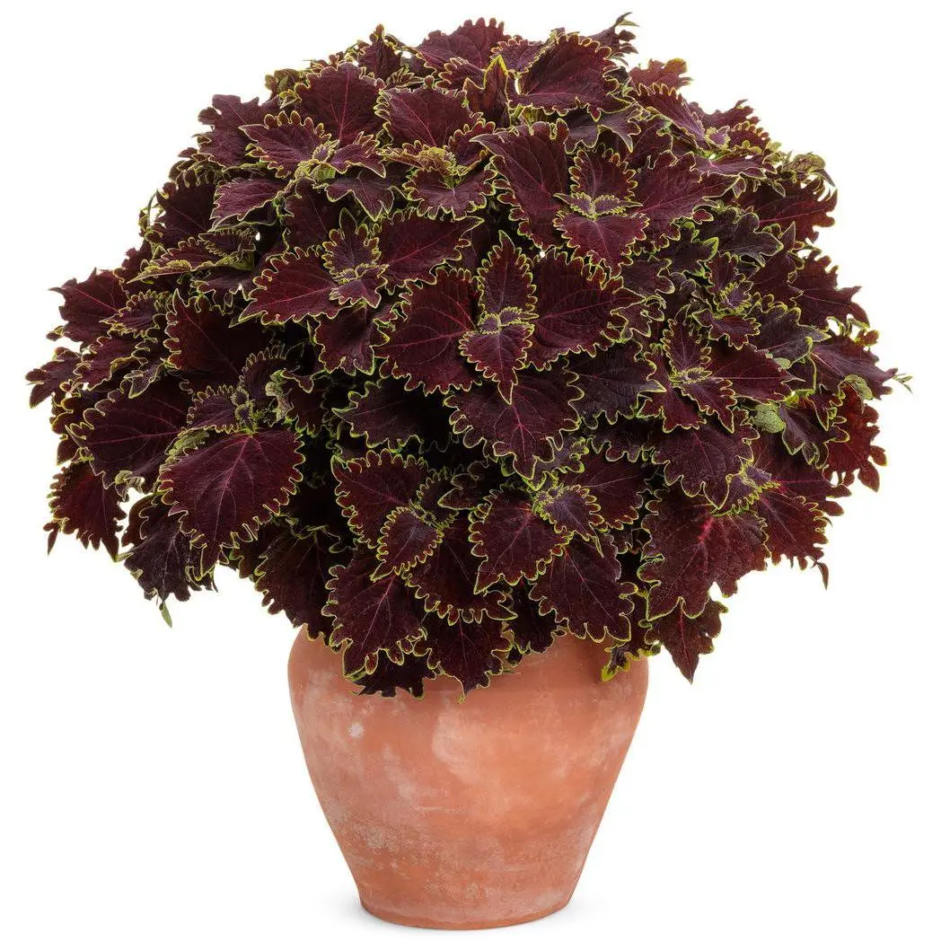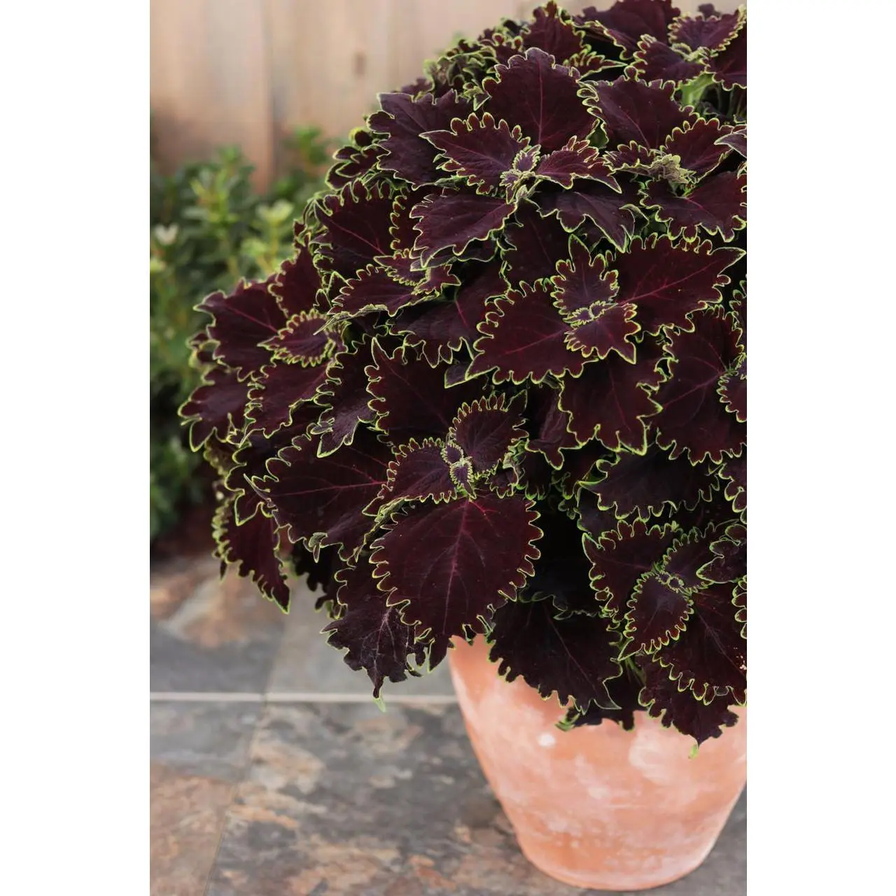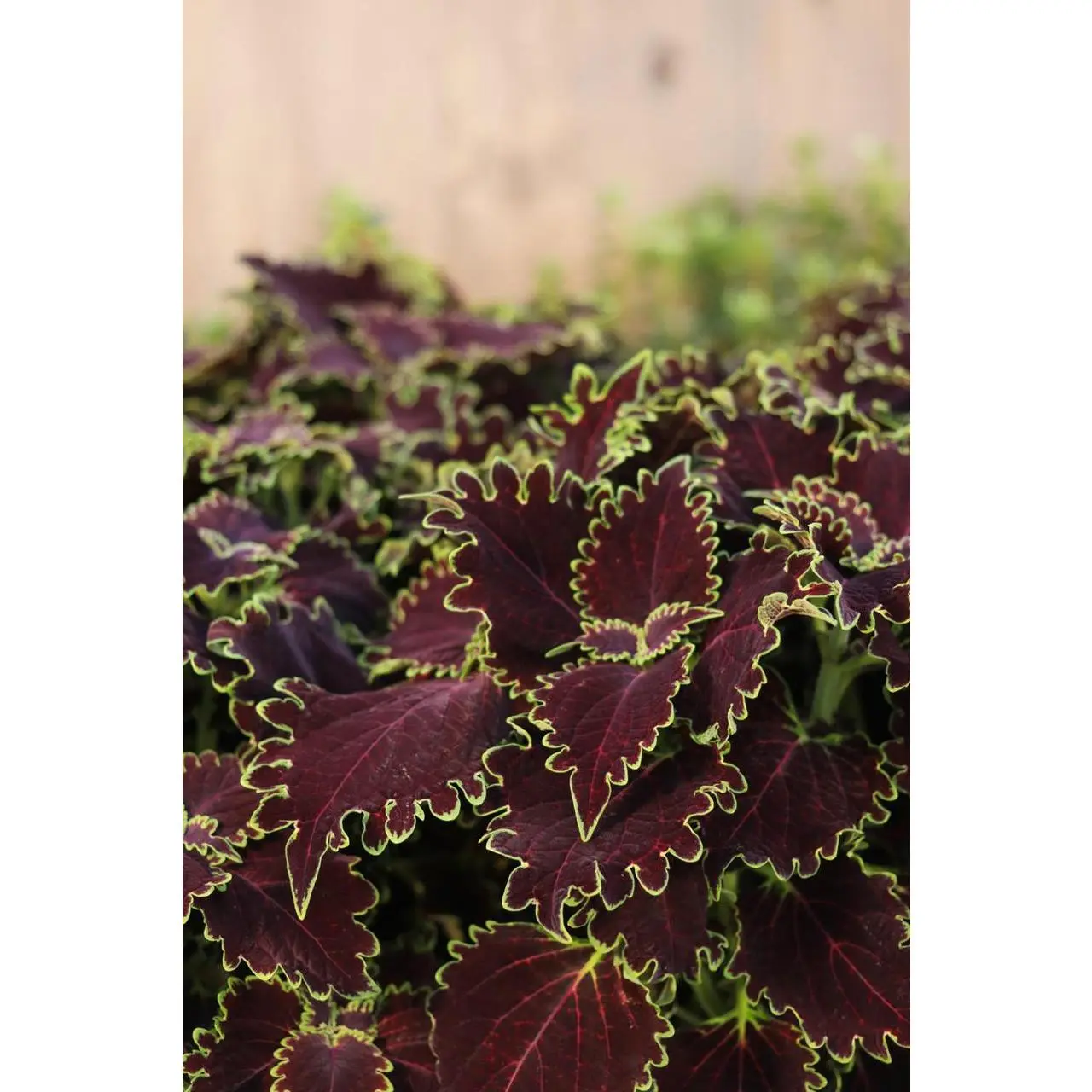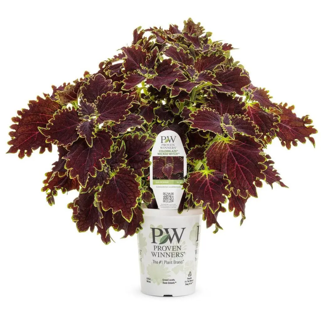 With deep burgundy leaves, perfectly outlined in chartreuse green, deeply frilled edges and being one of the tallest coleus in the ColorBlaze series, Wicked Witch Coleus will entrance you and provide incredible contrast for your sun or shade landscape or container garden. Just wait until you see these combined with your favorite white, lime green or pink flowers or foliage! Spring just got a lot more exciting!