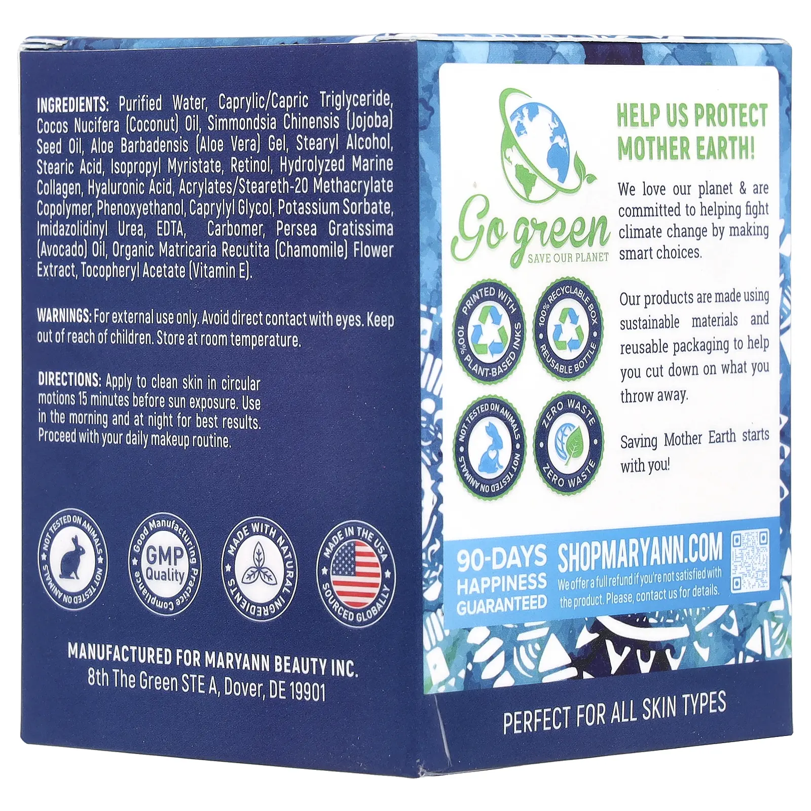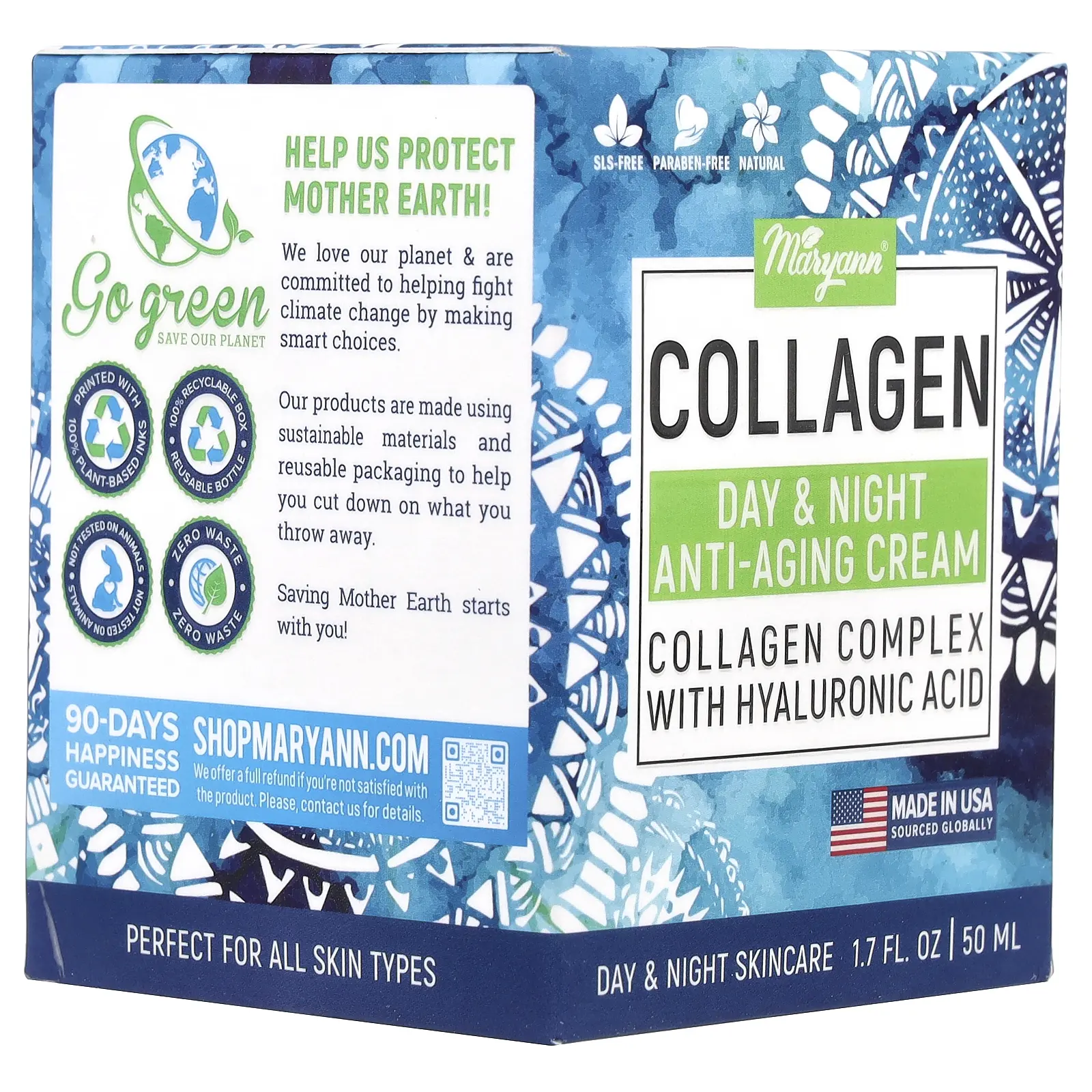 MaryAnn Organics Collagen Day & Night Anti-Aging Cream, For All Skin Types, 1.7 fl oz (50 ml)