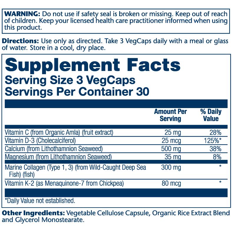 ·Includes a plant-based calcium sourced from sustainably harvested seaweed and collagen from wild-caught deep sea fish