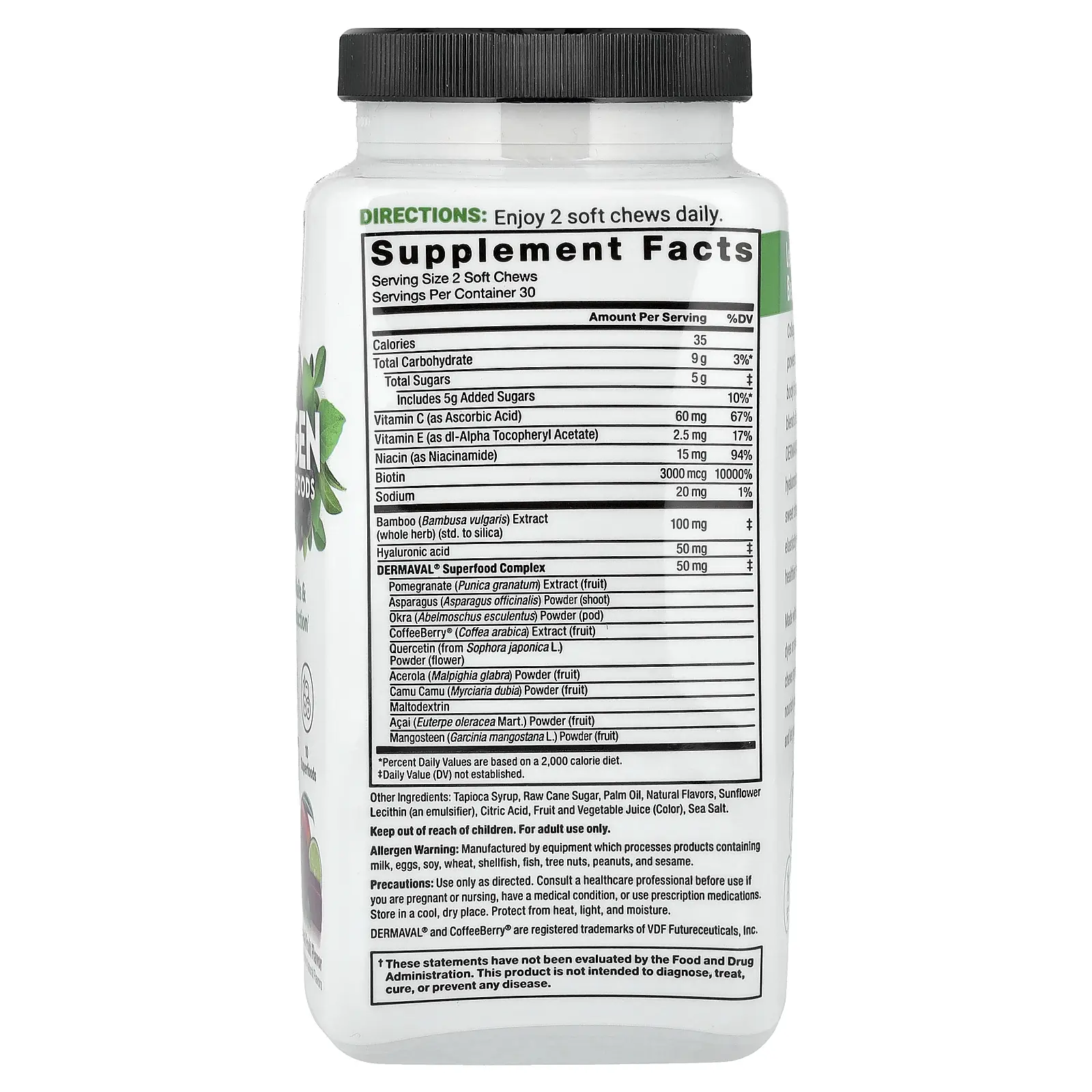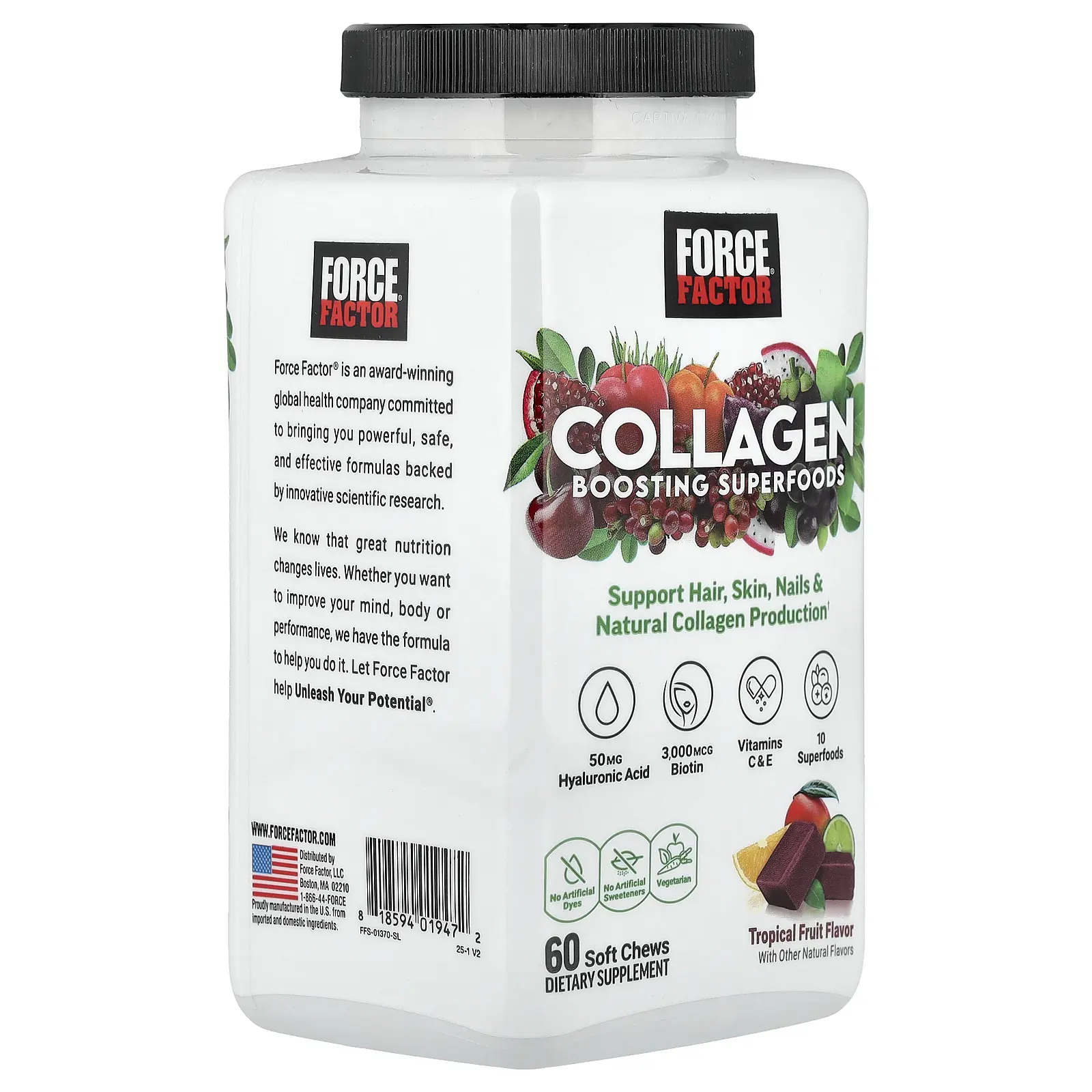 Force Factor Collagen Boosting Superfoods, Tropical Fruit, 60 Soft Chews