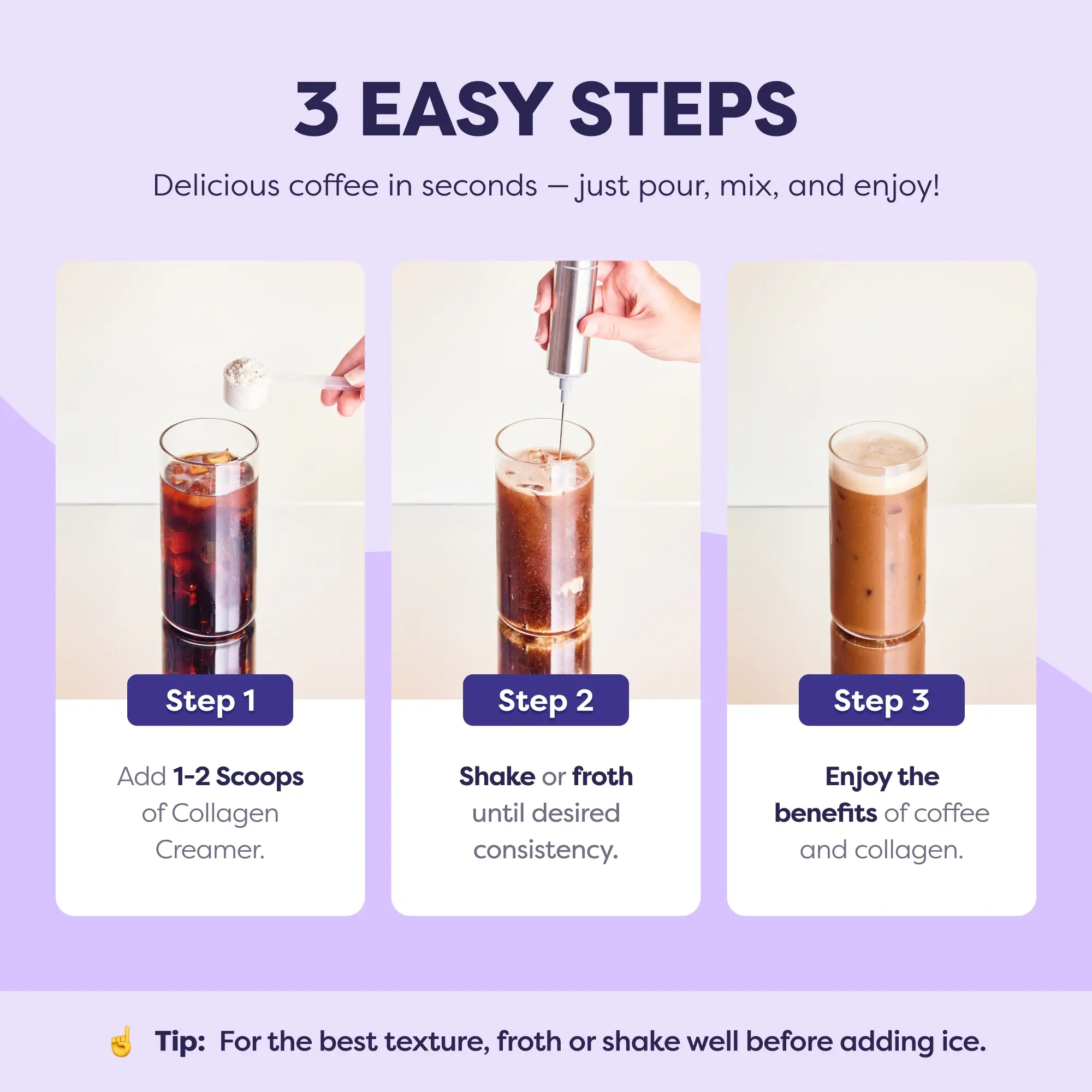 ·SMOOTH & CREAMY - Enjoy the ONLY coconut collagen creamer designed for iced coffee that's equally delightful when hot. Simply mix in coffee, tea, or use in your favorite baking recipes.