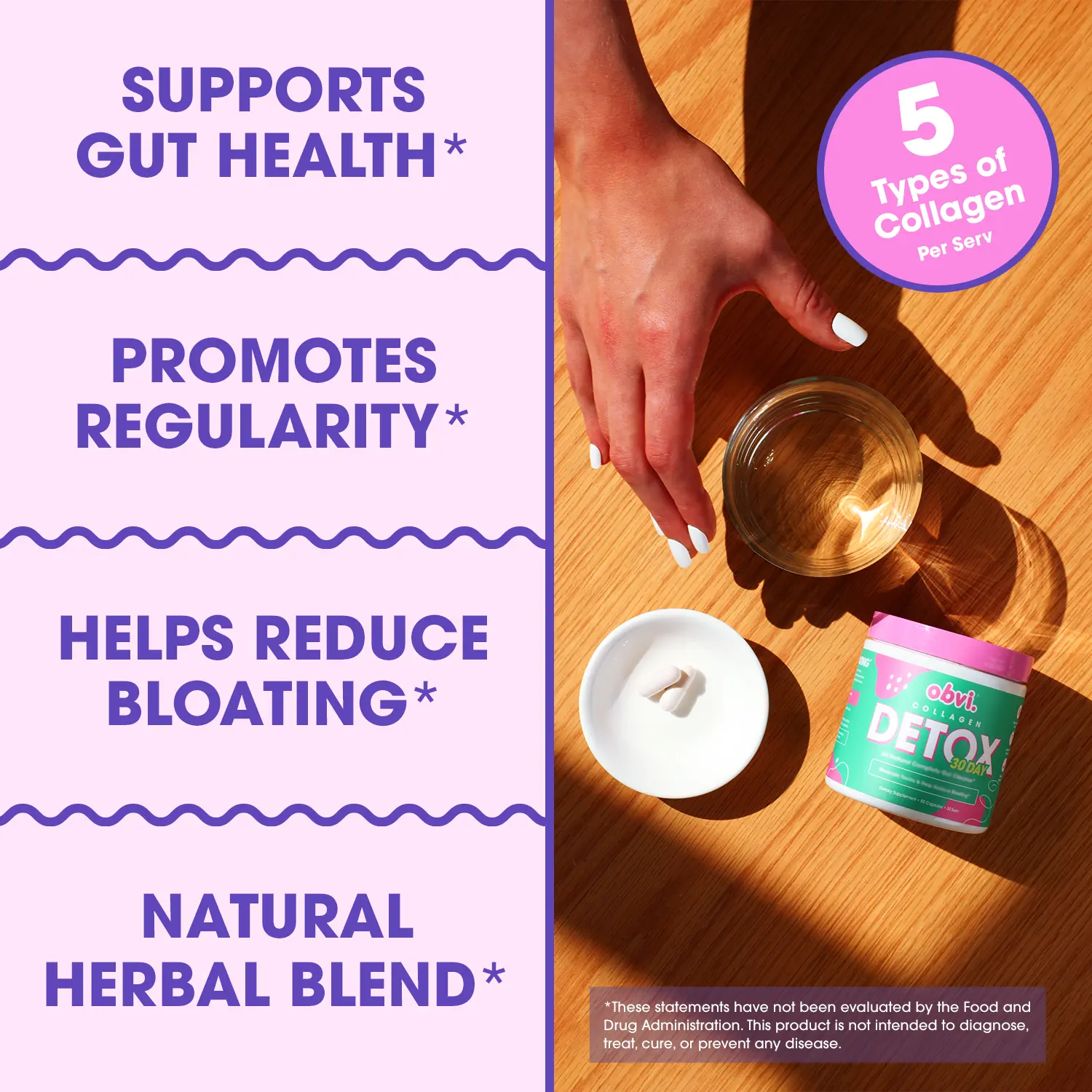 Obviās Collagen Detox is a gentle 30-day cleanse designed to support digestion, reduce bloating, and help you feel lighter ā all while nourishing your skin, hair, and joints with 5 types of collagen.