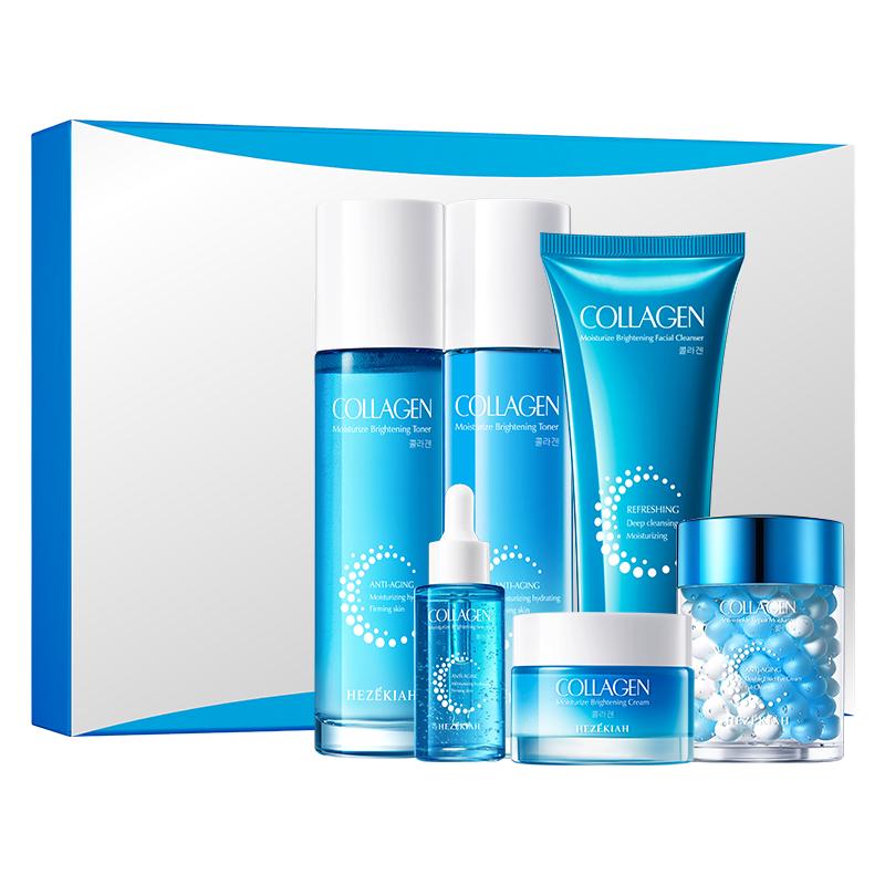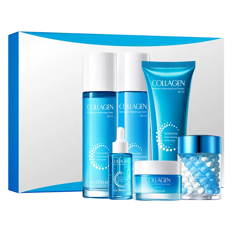 Este set de cuidado facial destaca por ofrecer una rutina completa para la hidratación y el mantenimiento de una piel sana y luminosa. Su presentación en tonos azules transmite frescura y limpieza, reflejando el enfoque del producto en revitalizar y proteger la piel.