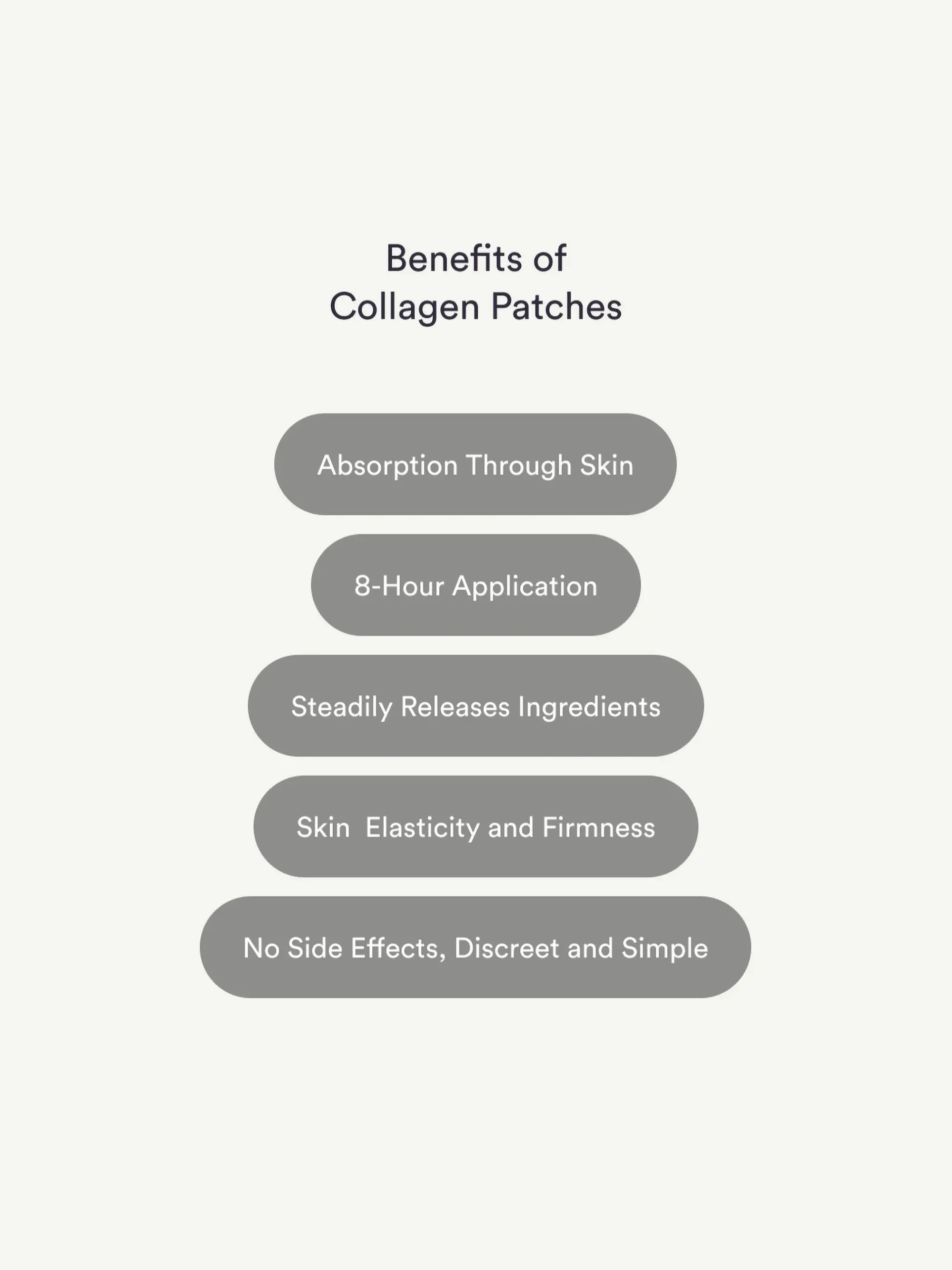 Collagen Patches: Achieve glowing, youthful skin with Collagen Patches. These advanced transdermal patches deliver collagen peptides directly into your bloodstream, promoting skin elasticity, hydration, and a radiant glow. Experience smoother, firmer skin, healthier hair and nails, and enhanced overall vitality—all without the hassle of pills.
