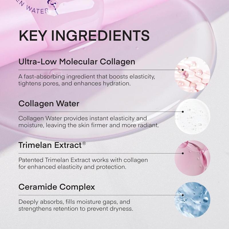 ·Hydration & Radiance: Collagen Water and Trimelan Extract, a patented ingredient, replace purified water to enhance elasticity and moisture retention, leaving your skin more hydrated, radiant, and visibly rejuvenated by morning.