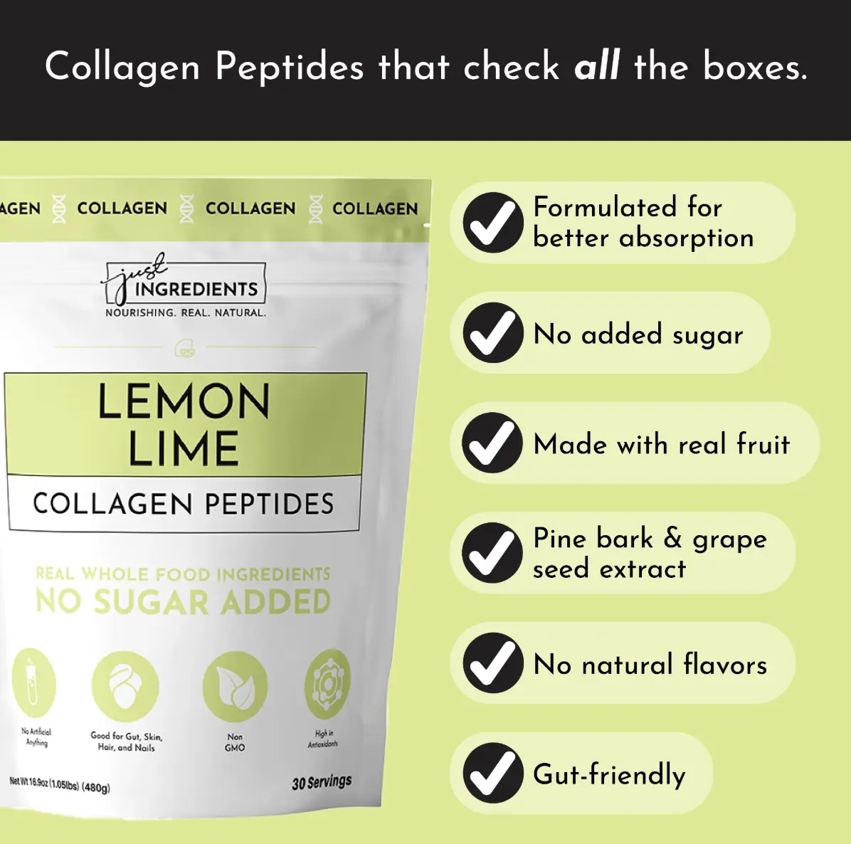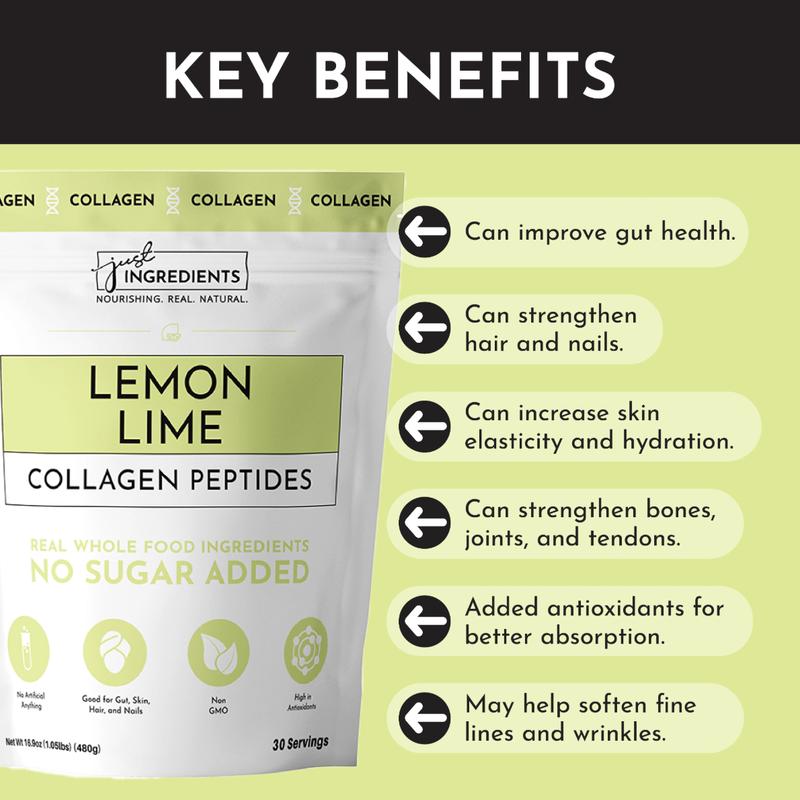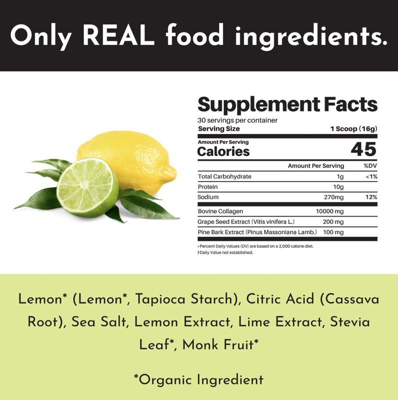 Love these Lemon Lime collagen peptides! They taste so good alone, or if I'm feeling fancy I'll mix them in a lemon lime Zevia. I feel like my skin has improved so much since switching to Just Ingredients products. I use it so much I had to get a cute jar for it so it would be more easily accessible.