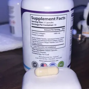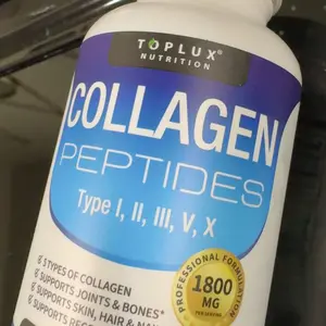 The order of Toplux nutrition collagen peptides Type I, II, III, V, X to help me with Collagen, Support Joints and Bones, Skin, Nails, and Hair, plus Recovery and Performance the 1800 mg capsules arrived today and I immediately took the recommended dosage. I’m so excited to see the results.