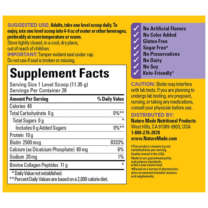 Boost your Collagen intake with a sugar free◆ and keto-friendly‡ Collagen Peptides drink mix powder. This supplement includes a clinically studied ingredient to support healthy joints▴▪️ and Biotin for healthy hair, skin and nails. Just mix this unflavored powder into your favorite beverage and enjoy!†