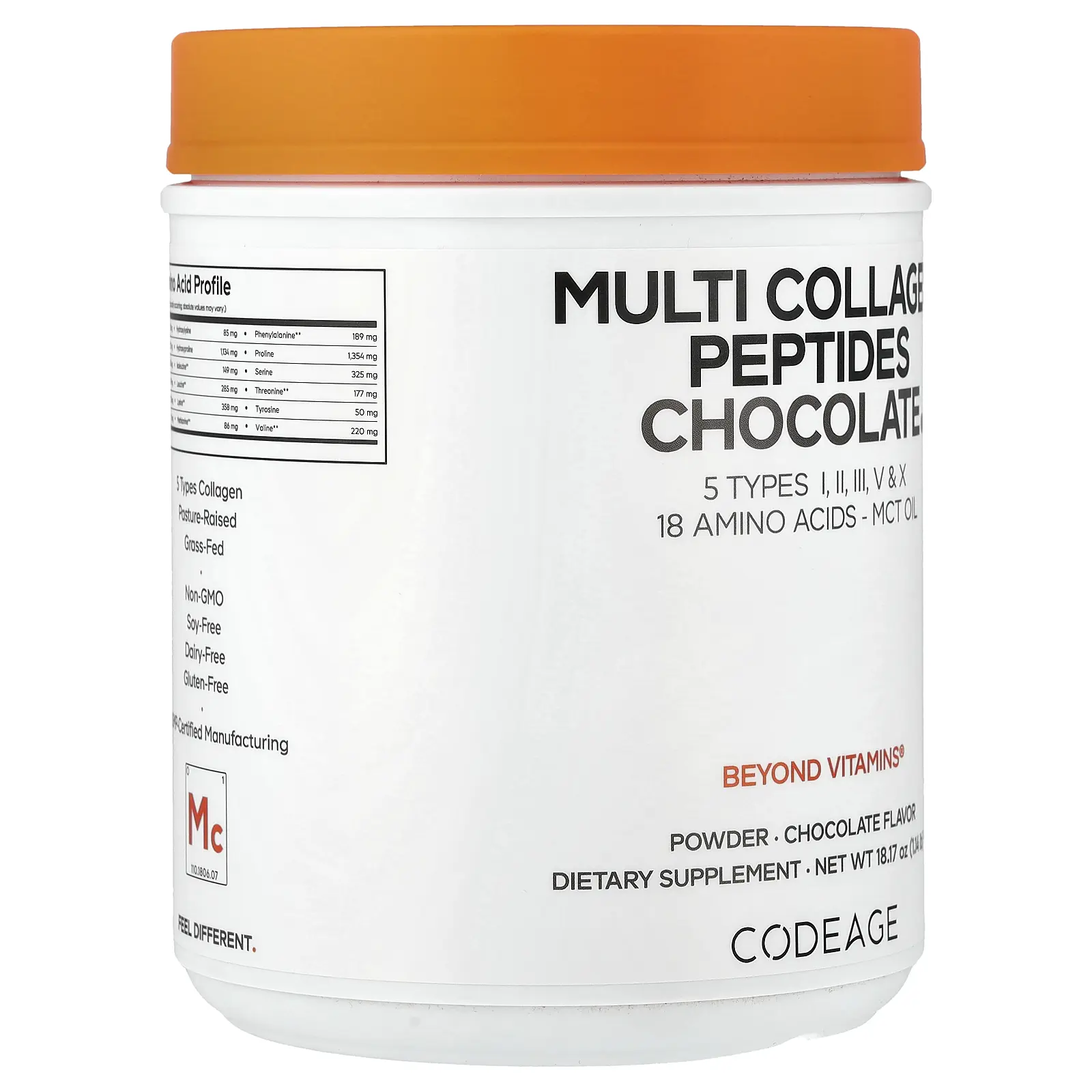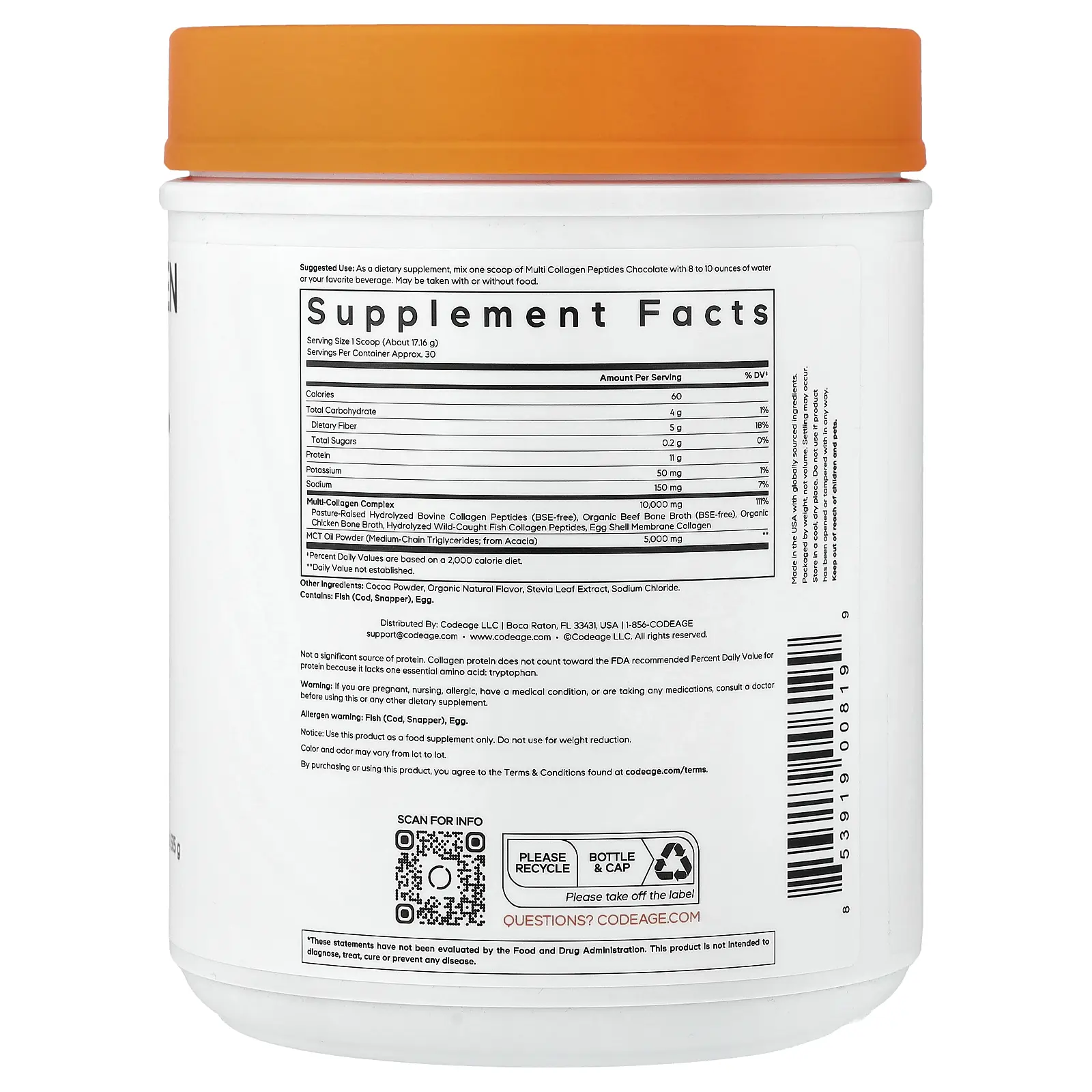 5. Codeage Multi Collagen Peptides Powder, Chocolate, 18.17 oz (515 g)