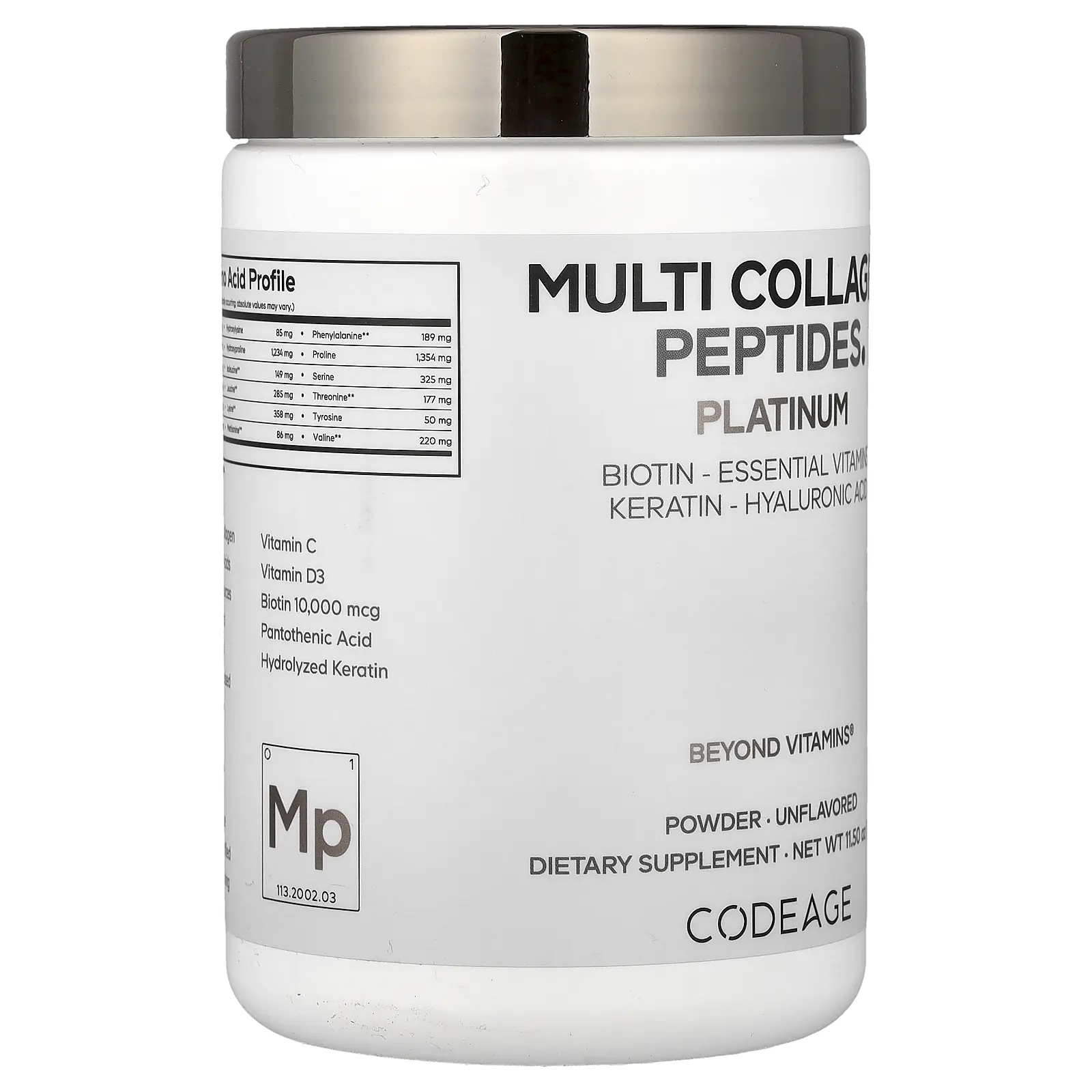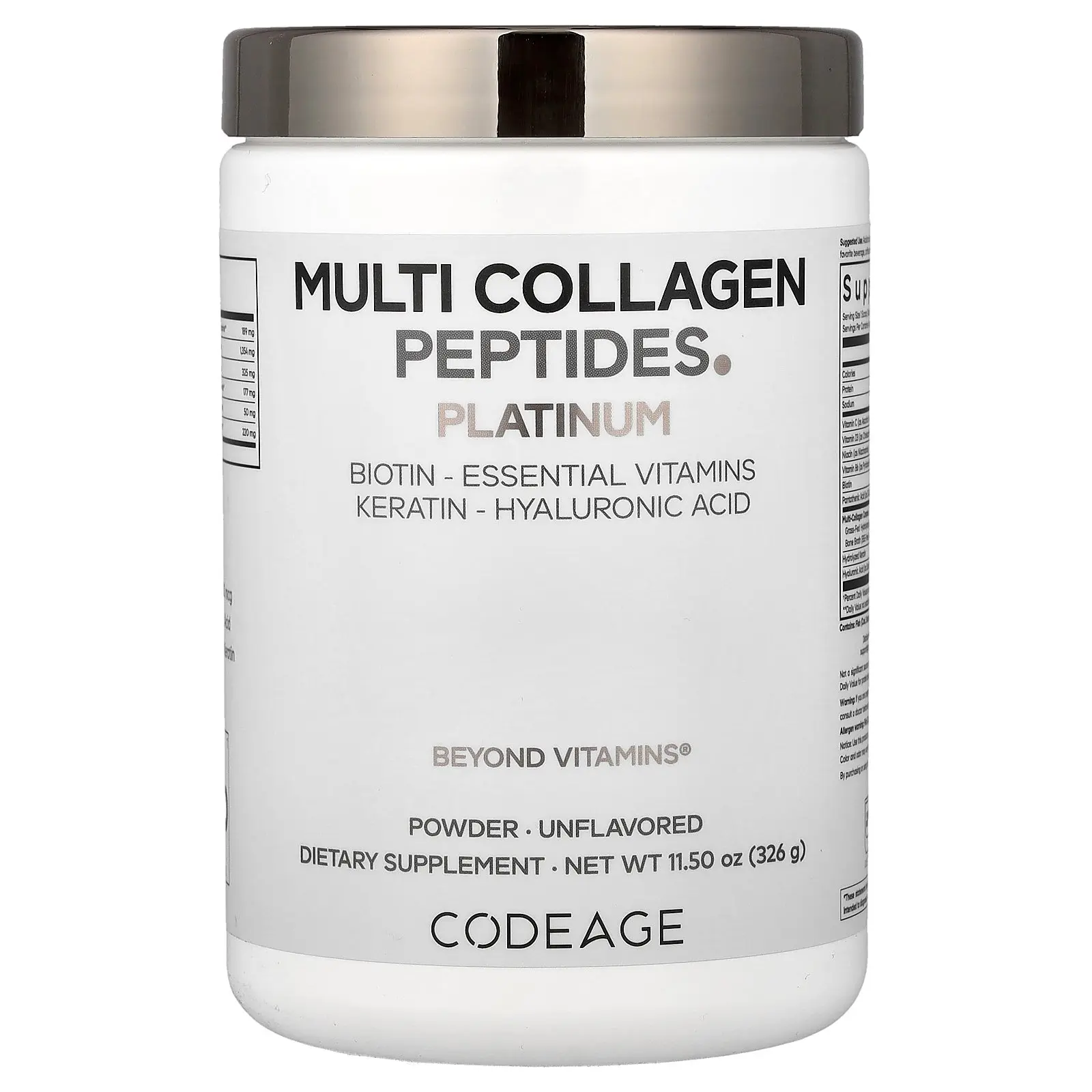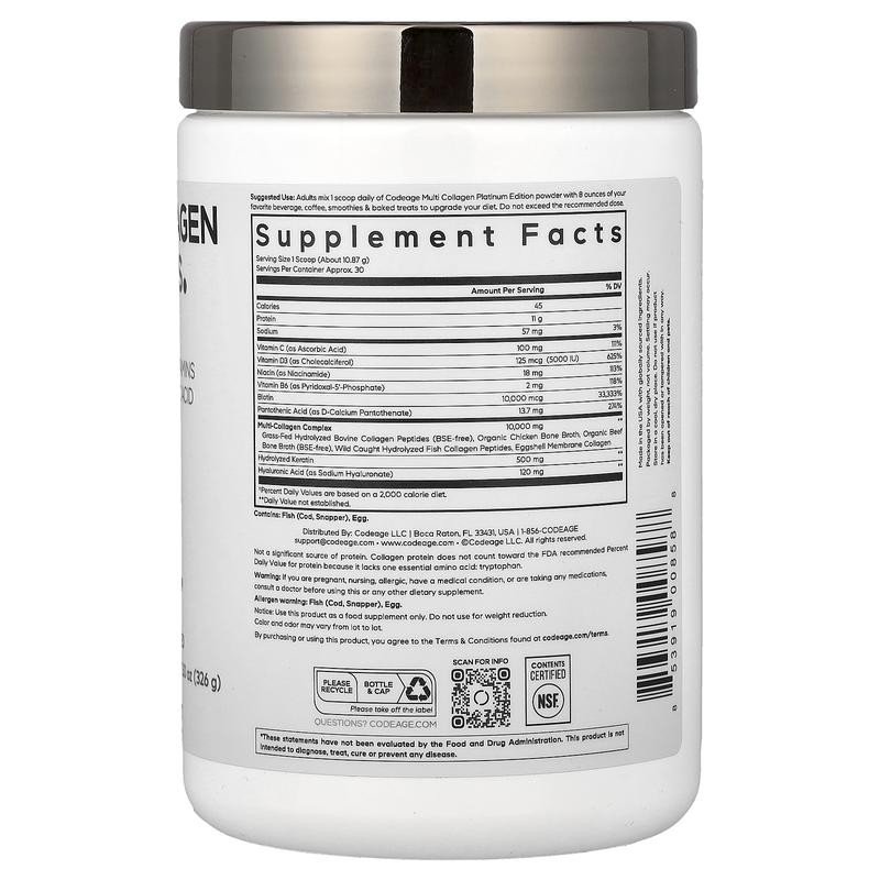 Codeage Multi Collagen Peptides Powder, Platinum, Unflavored, 11.5 oz (326 g)