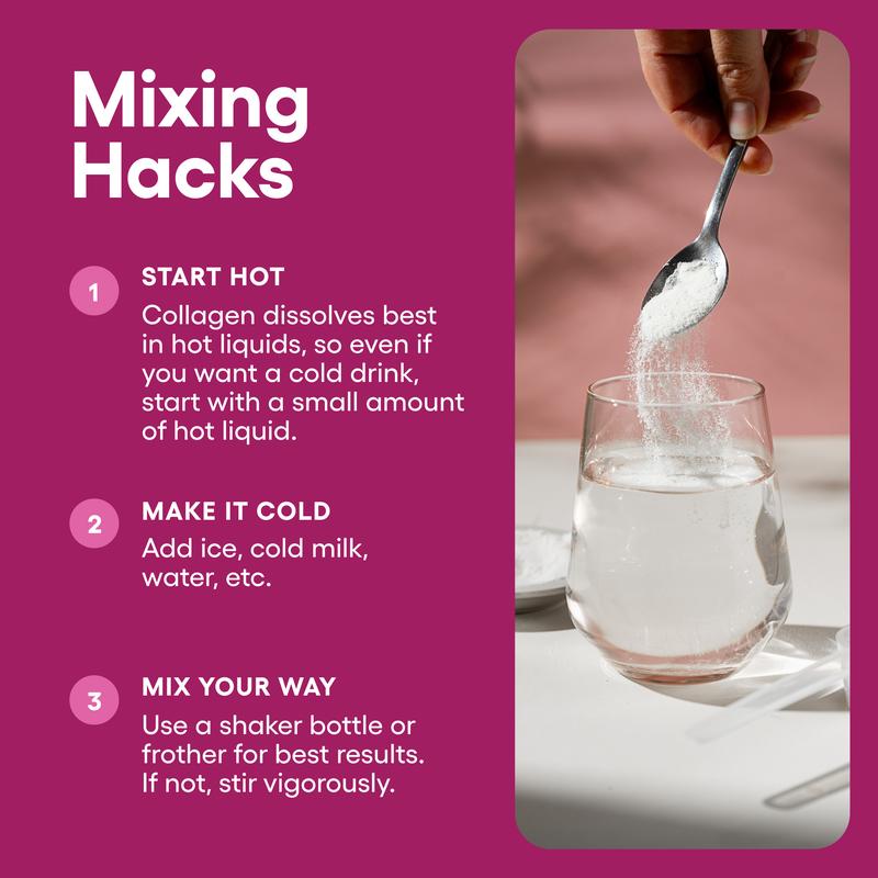 Usage: Mix 1 scoop of collagen powder into your favorite beverage or meal 1 time a day, mixing well. Collagen Peptides may clump in cold water so it's best to use in hot liquids, smoothies, or foods.