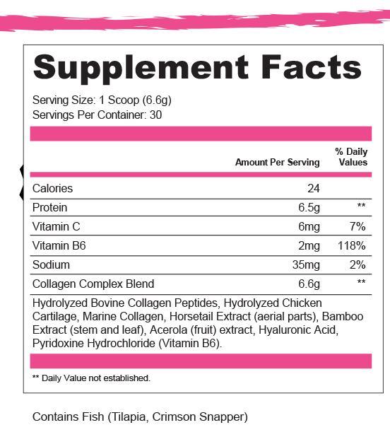 This unique, powerful blend of collagen peptides types I, II, III, combined with powerful ingredients such as acerola, hyaluronic acid, and vitamin B6, is designed to deliver visible results from the inside out.