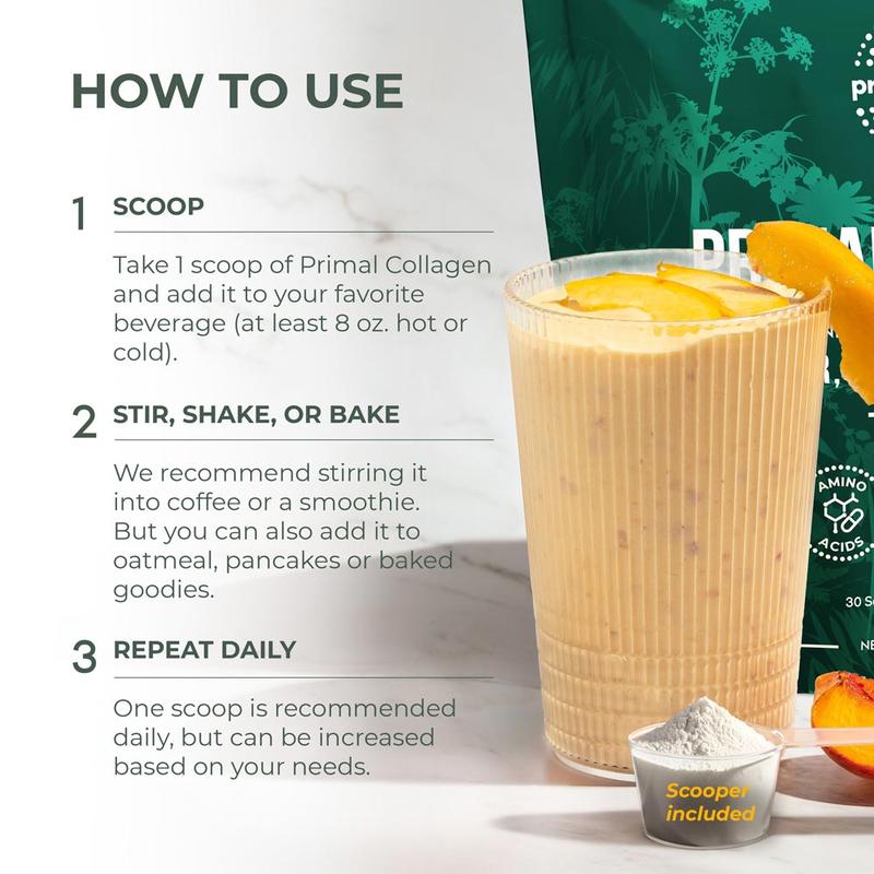 Revitalize your skin, joints, and overall well-being with Primal Collagen, an ultra-premium collagen peptides powder.
