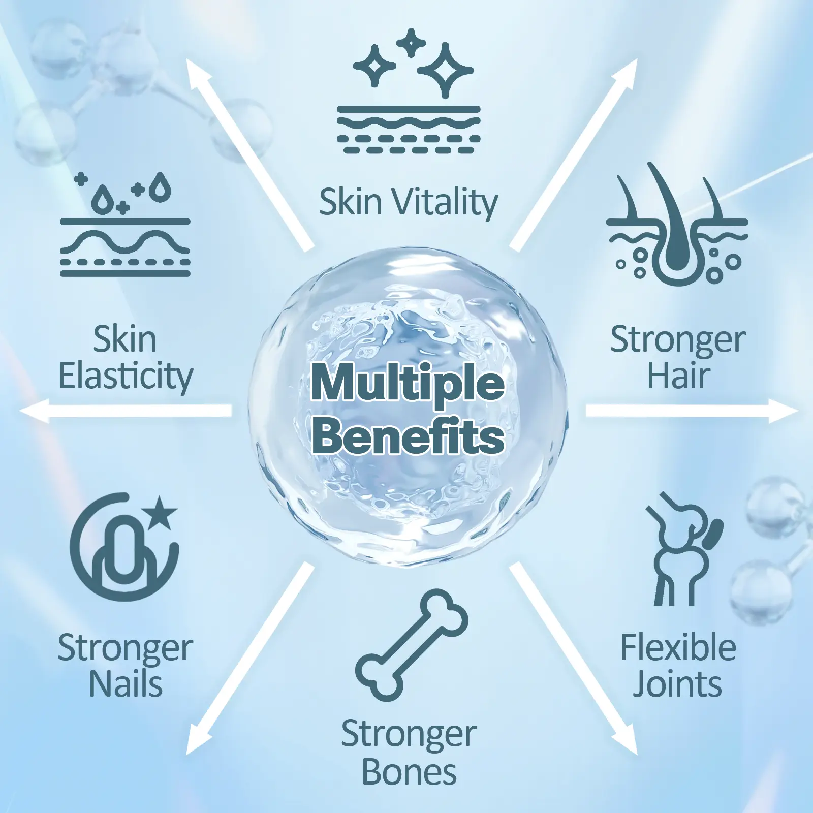 ·High Absorption: Premium collagen peptides are easy to absorb.