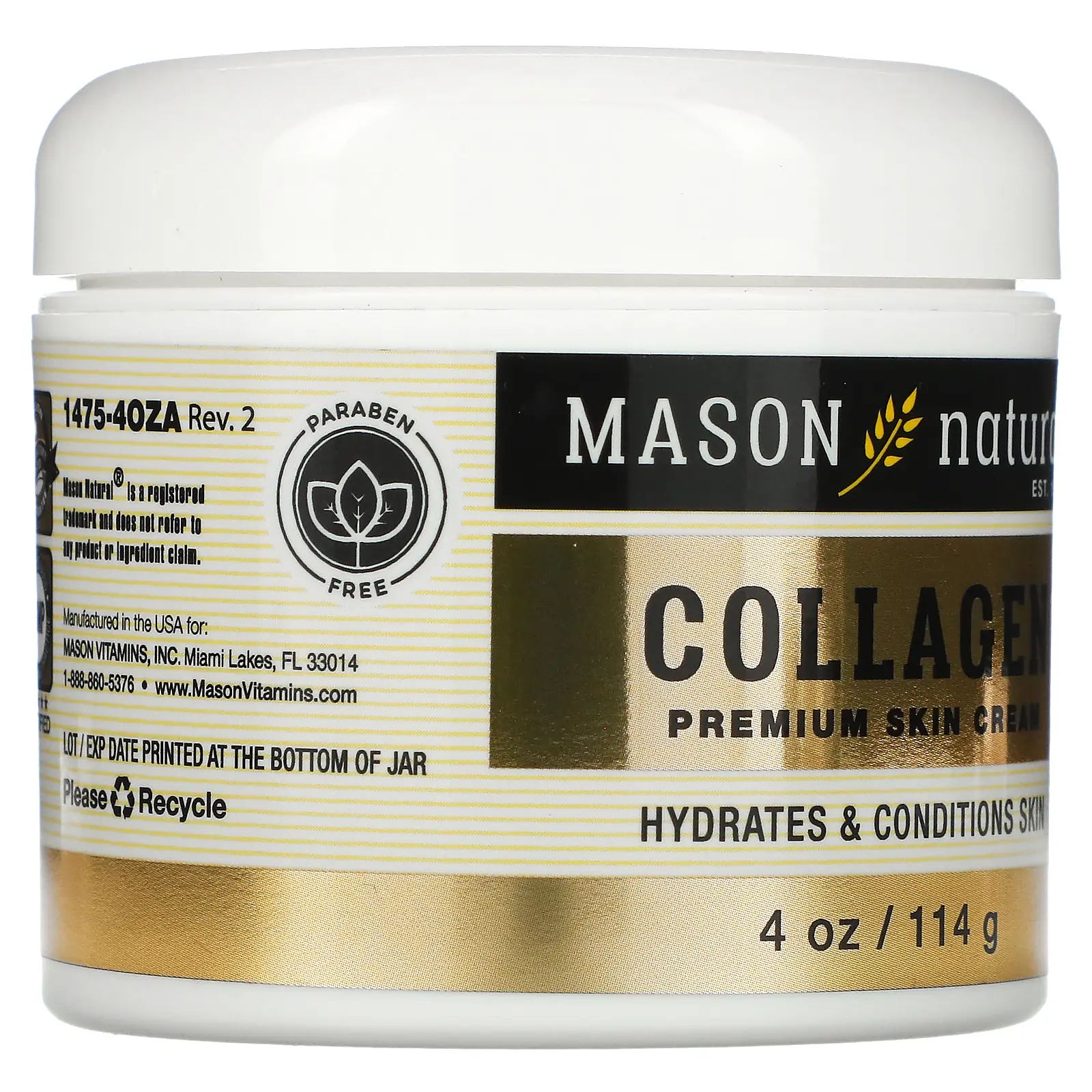 Mason Natural Collagen Premium Skin Cream, Pear, 4 oz (114 g)