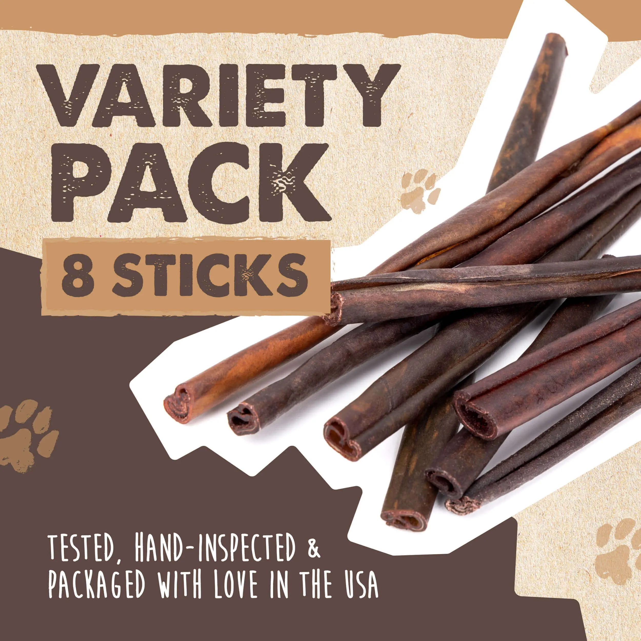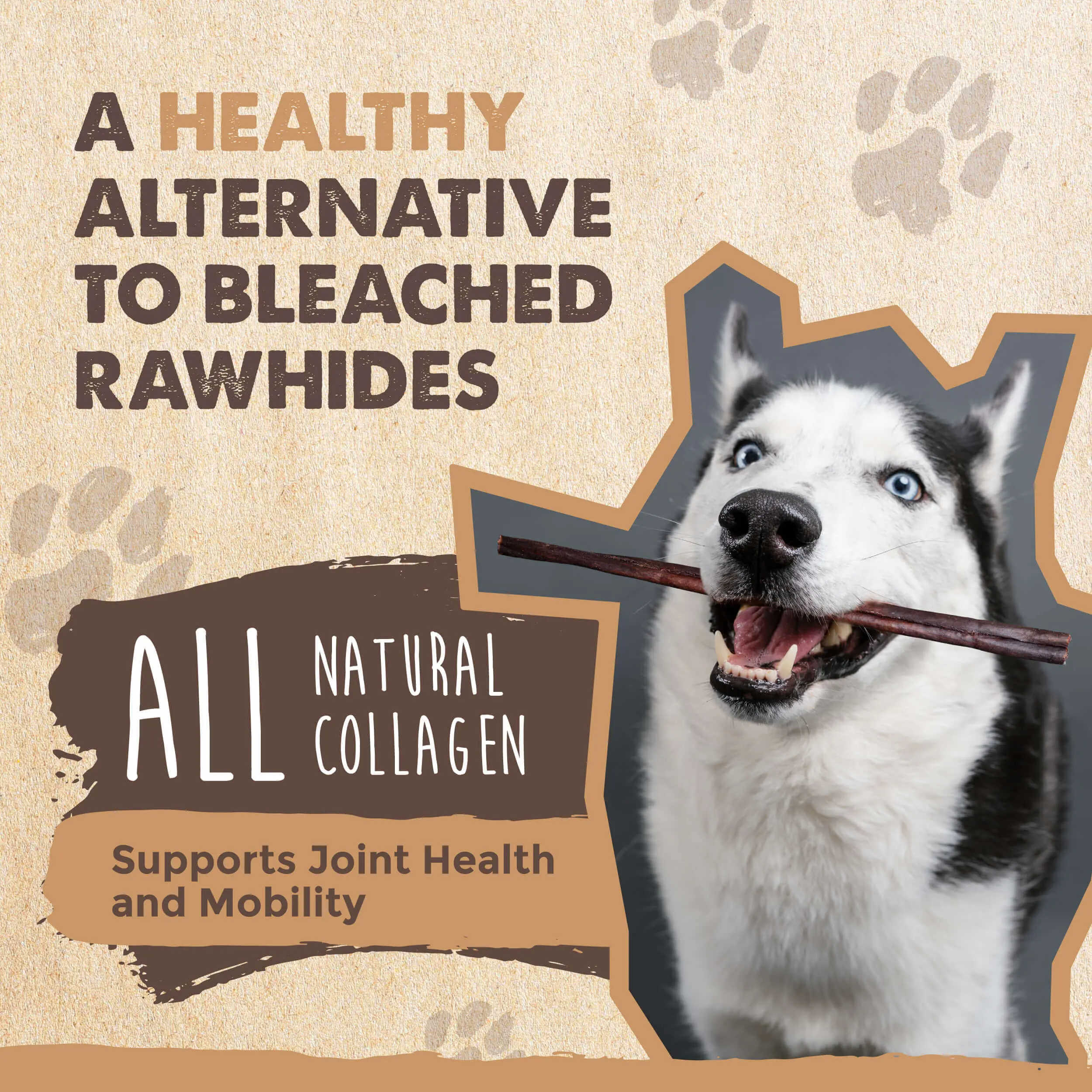 Treat your dog with our Variety 8 Pack of Beef Collagen Sticks. Crafted from grass-fed beef skin, these sticks offer a natural alternative to traditional rawhide. Single-ingredient, free from grains, gluten, chemicals, and preservatives. Perfect for teething puppies and power chewers.