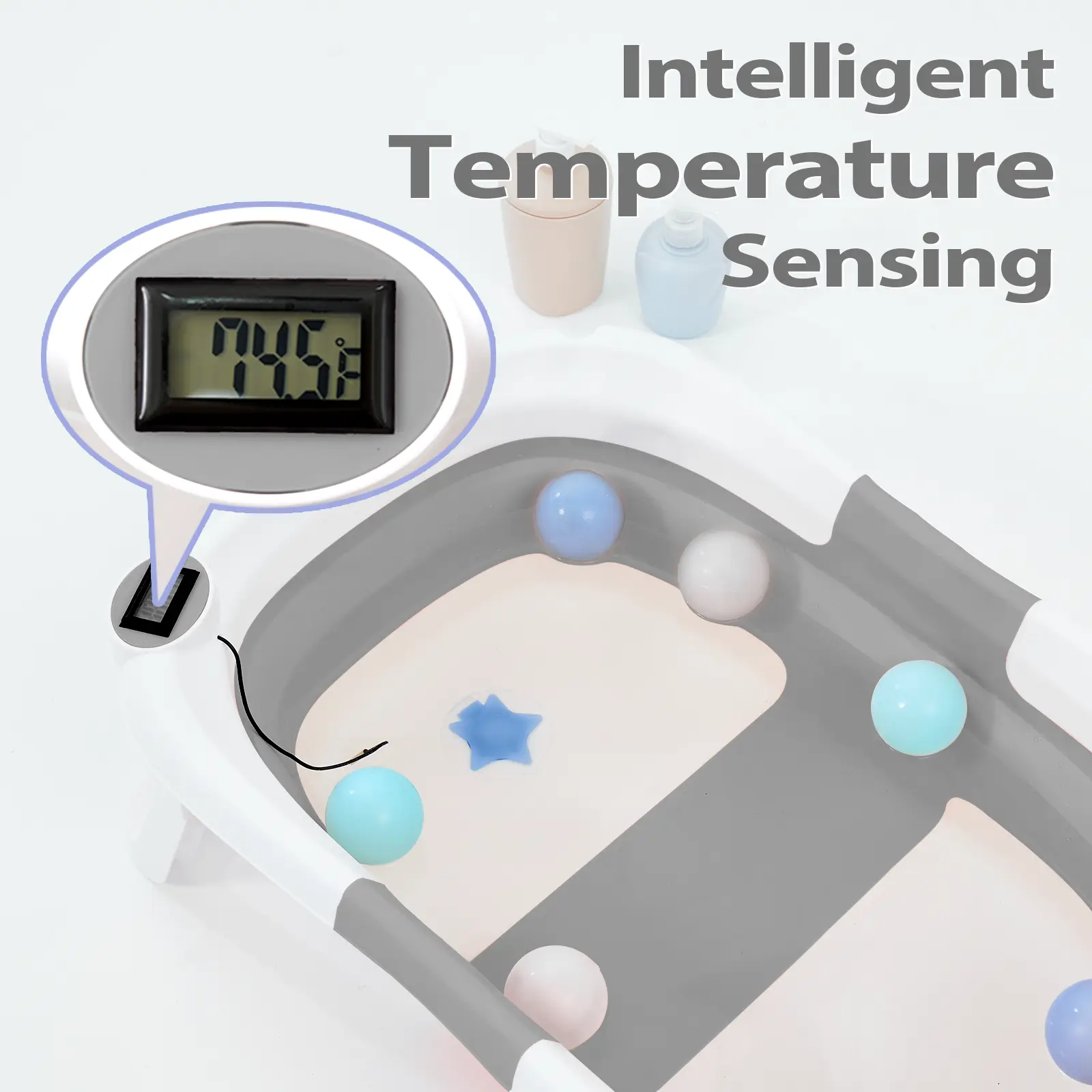 Equipped with a built-in temperature sensor, the bathtub monitors water temperature in real time, preventing the water from becoming too hot or too cold. This ensures your baby’s bath is always at a comfortable temperature, reducing the risk of scalding or chilling. The heat-retention design keeps the water warmer for longer, making it ideal for home baths, travel, or camping.