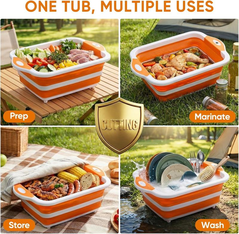 ·Easy to Clean & Durable: Dishwasher-safe collapsible meat prep tub with lid makes cleanup simple Built tough for outdoors yet perfect for compact kitchens Reliable for meal prep, camping & tailgating.