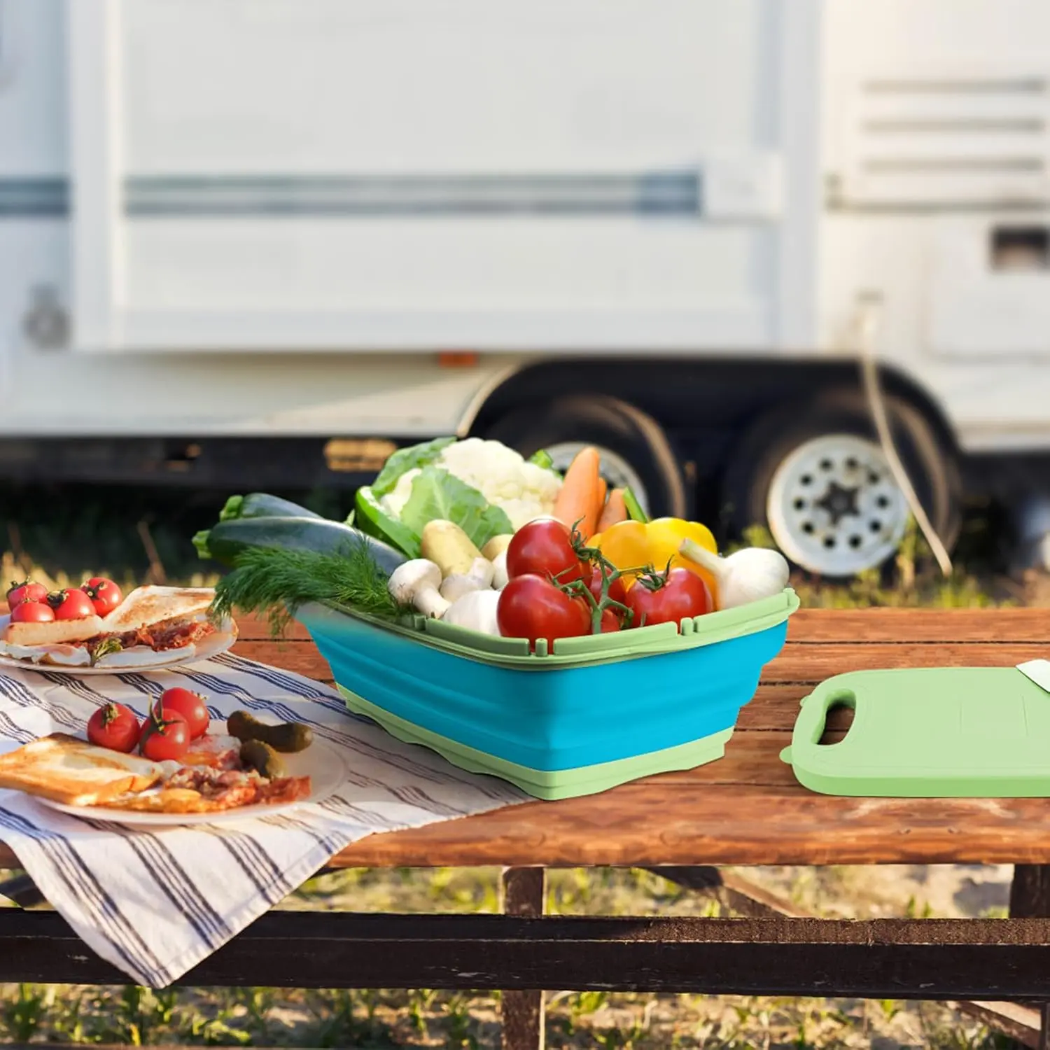 Space-Saving & Portable Design: Thanks to its innovative foldable cutting board's folding design, this cutting board is incredibly easy to transport, making it perfect for outdoor adventures. When not in use, it folds flat to save valuable space in your kitchen cabinets, keeping your cooking area clutter-free. Ideal for both indoor and outdoor use, this Collapsible Sink Cutting Board is a versatile addition to any kitchen.