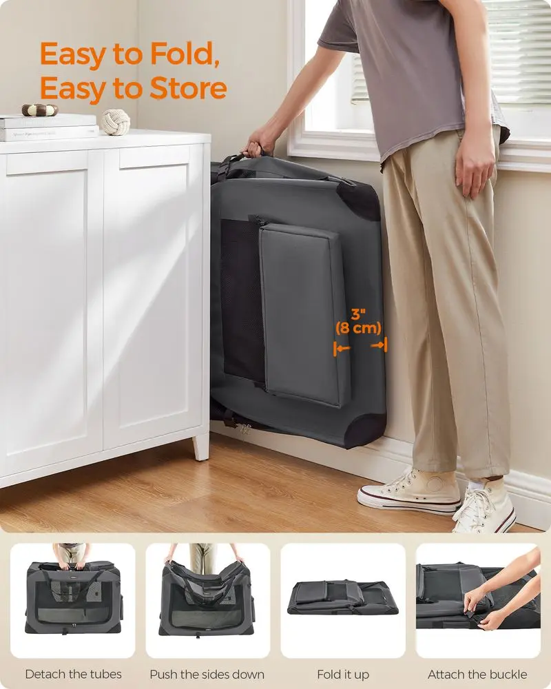 ·[Multipurpose] The soft dog crate provides a cozy and secure environment for your pet during camping, car travels (fits in car trunks), hotel stays, or even at home