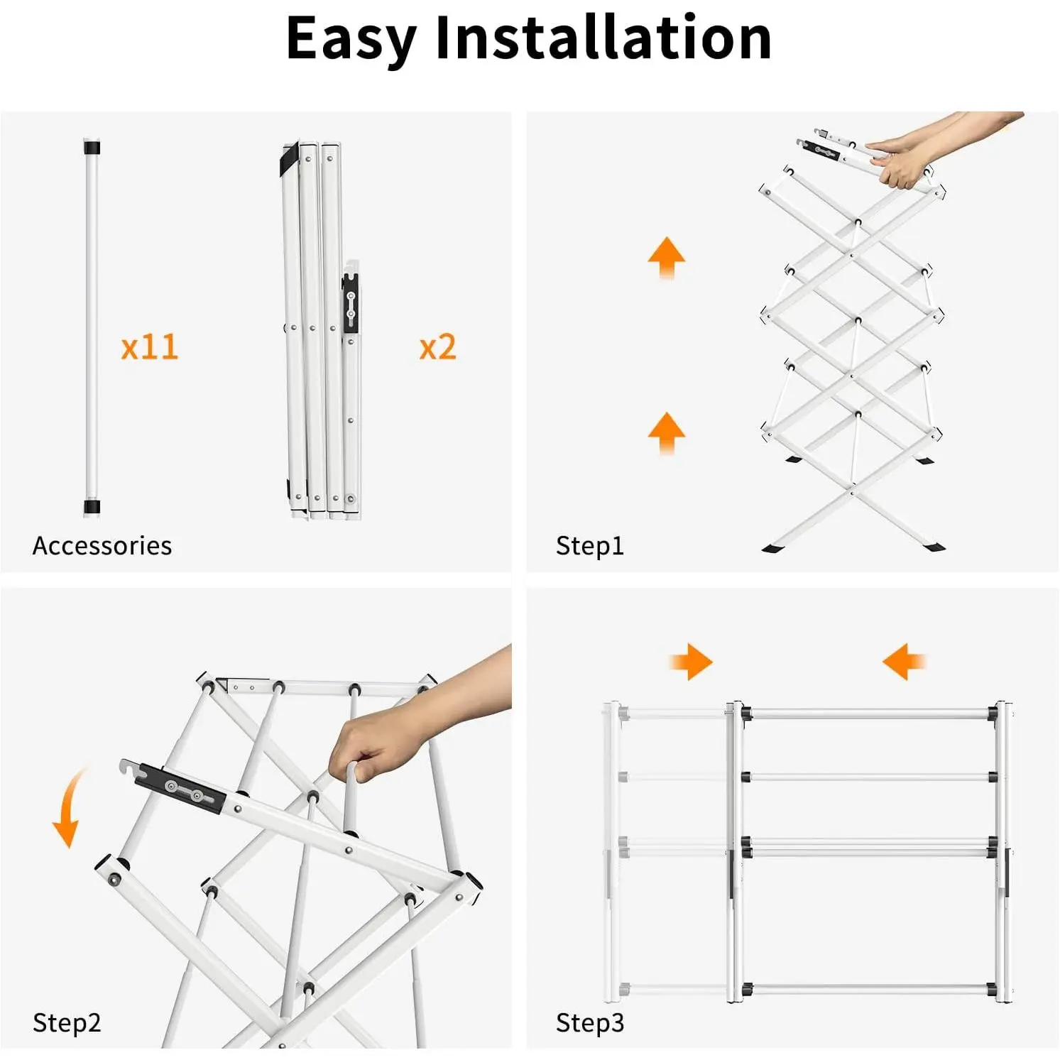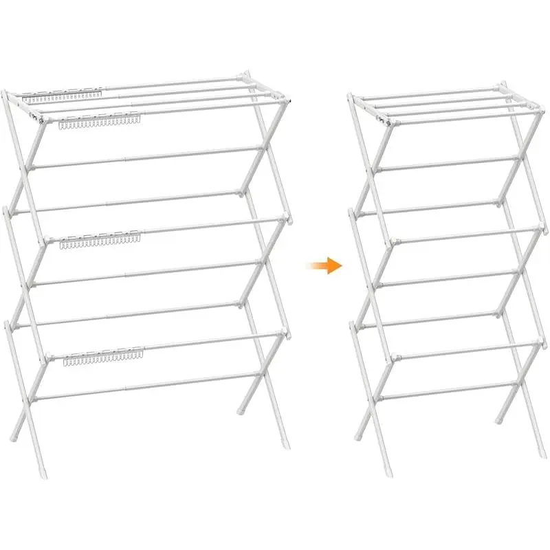 [Clothes Drying Rack Foldable ]The Rbitroise clothes drying rack is made of Iron pipe material with anti-rust spray paint on the exterior, not easy to rust , which can endure different weathers for indoor and outdoor use,making it perfect for apartments or small living spaces. [Drying Rack Clothing Folding]The drying rack features 11 steel drying rods that can be extended from 18.7 to 29.1 inches in length, providing ample drying space for towels, clothes, sweaters, and more. [Laundry Drying Rack Collapsible ]The 3-tier laundry drying rack collapsible measured at 28.8" (L) x 14.2" (W) x 40" (H), is both practical and space-saving.When not in use, it easily folds down to a compact 14.1 x 18.7x 4 inches for convenient storage. [Small Dry Rack for Clothes] The dry rack Weighing only 4.95 pounds, this space-saving drying rack is highly portable.Its compact design is perfect for apartments, small spaces, and those needing a convenient laundry solution for travel. [Lightweight Storage]This foldable clothes drying rack stand for clothes comes with non-skid rubbers at the bottom that won't scratch the floor. Its collapsible design allows for easy storage and transportation, making it perfect for use in the laundry room or on the patio, or for stashing away in a corner to save space. [Easy Assembly] With clear instructions, you can assemble this clothes drying rack in just 10 minutes, making it a convenient addition to your daily routine. [Purchase with Absolute Confidence] Any problems please contact us in time; we will solve for you within 24 hours