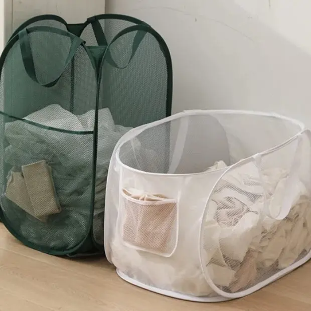 Collapsible 2-Section Mesh Laundry Basket | Sort & Store with Ease