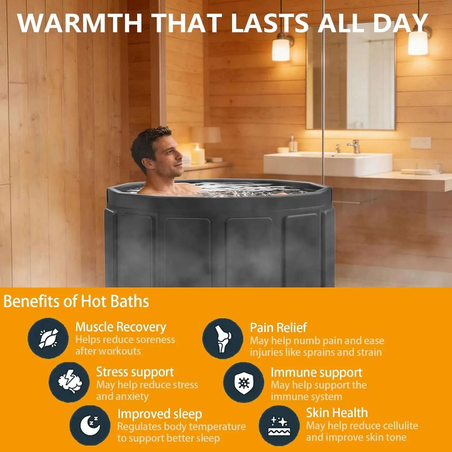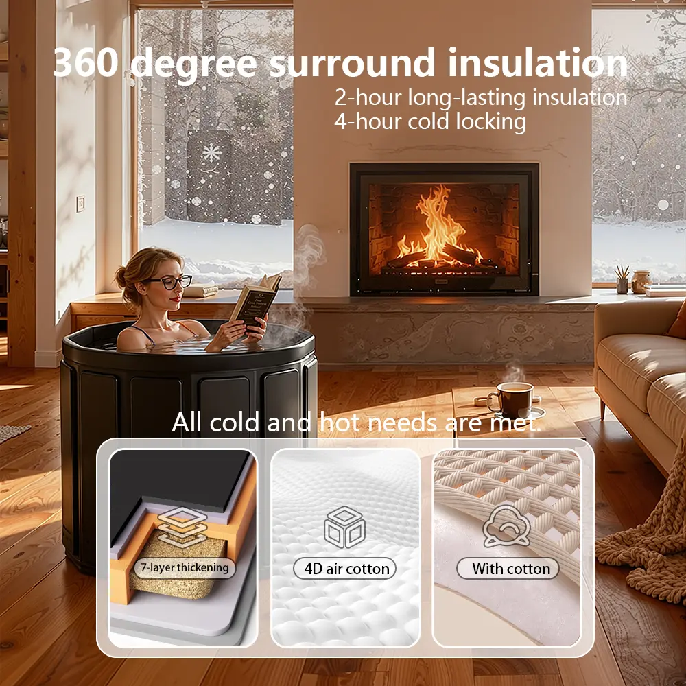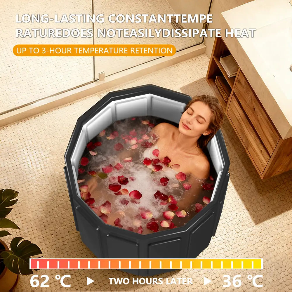 Excellent Heat Retention Stay warm for 45–90 mins, great for winter baths, sweat detox Deep Soak Design Immersive chest-depth water level for full relaxation