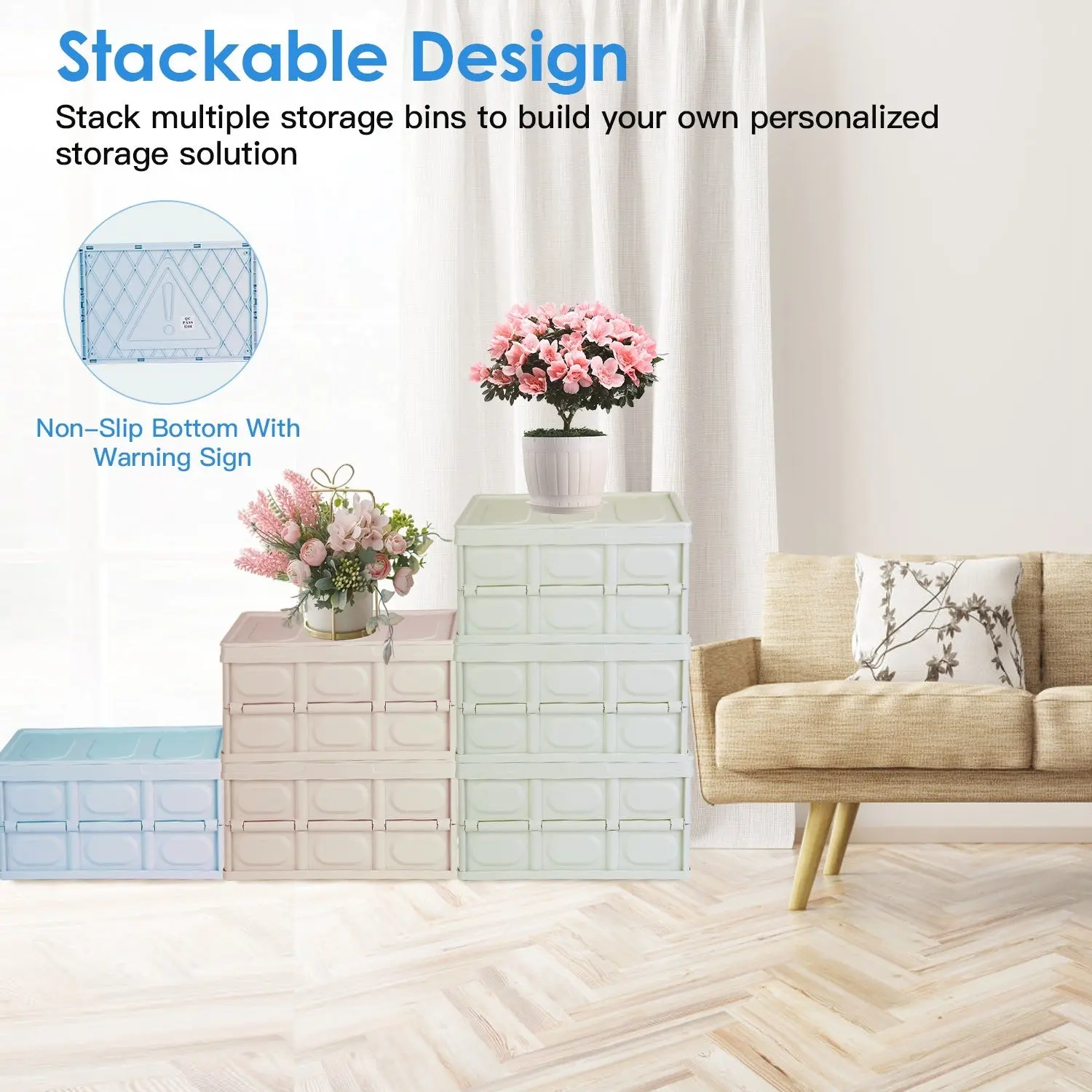 ·Space-Saving Foldable & Stackable Design:These plastic utility containers are foldable when not in use, saving valuable space at home.Each bin's base sits snugly into a groove on the lid of the one below, allowing for secure stacking.You can stack multiple storage bins to build your own personalized storage solution.