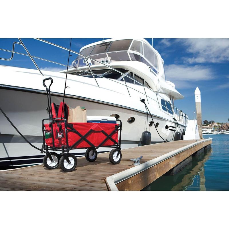The Mac Sports Collapsible Garden Utility Wagon makes transporting tools, groceries, plants, and more a breeze. With a 150-pound capacity and durable 600 denier polyester fabric, it's perfect for gardening, camping, or trips to the park. The adjustable handle ensures a comfortable grip, and the wagon easily collapses for compact storage and transport. Ideal for outdoor events and everyday use.