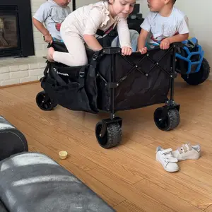 【Easy Assembly & Folding】: Simply insert the four wheels with 1 Side Pocket, 2 Mesh Cup holders, 1 Storage Cover, and 1 Strap. Your wagon will be ready for use. To fold, just lift the handle strap on the bottom, and it quickly collapses in seconds for easy storage.