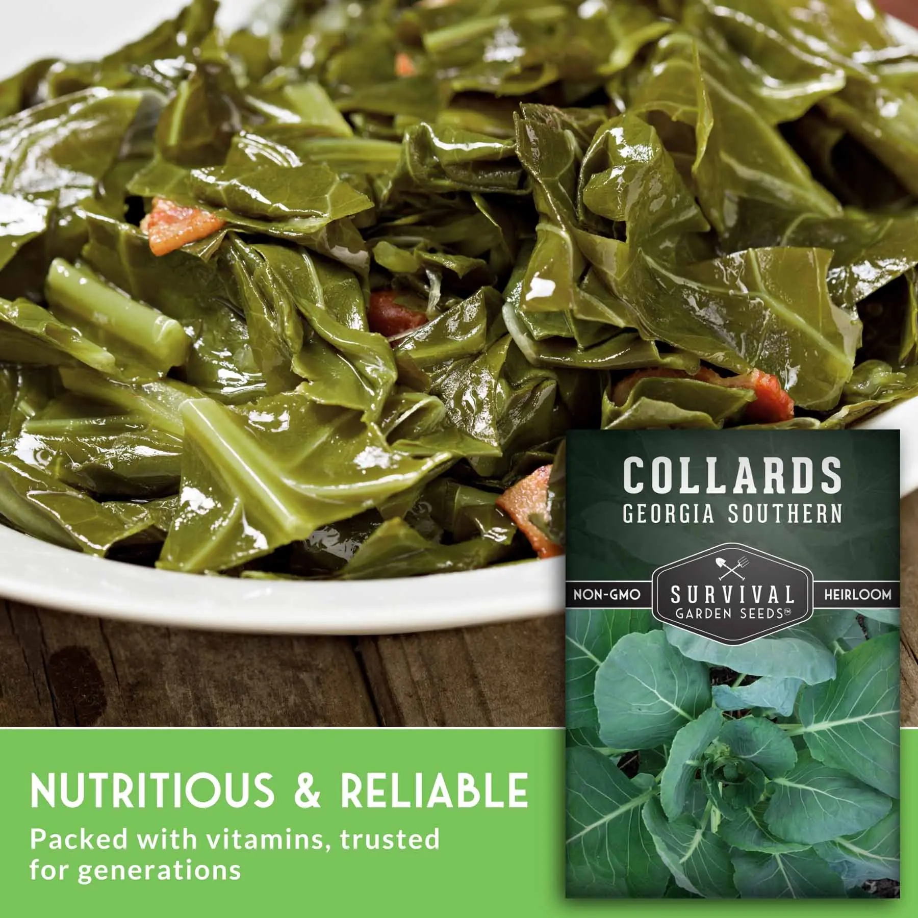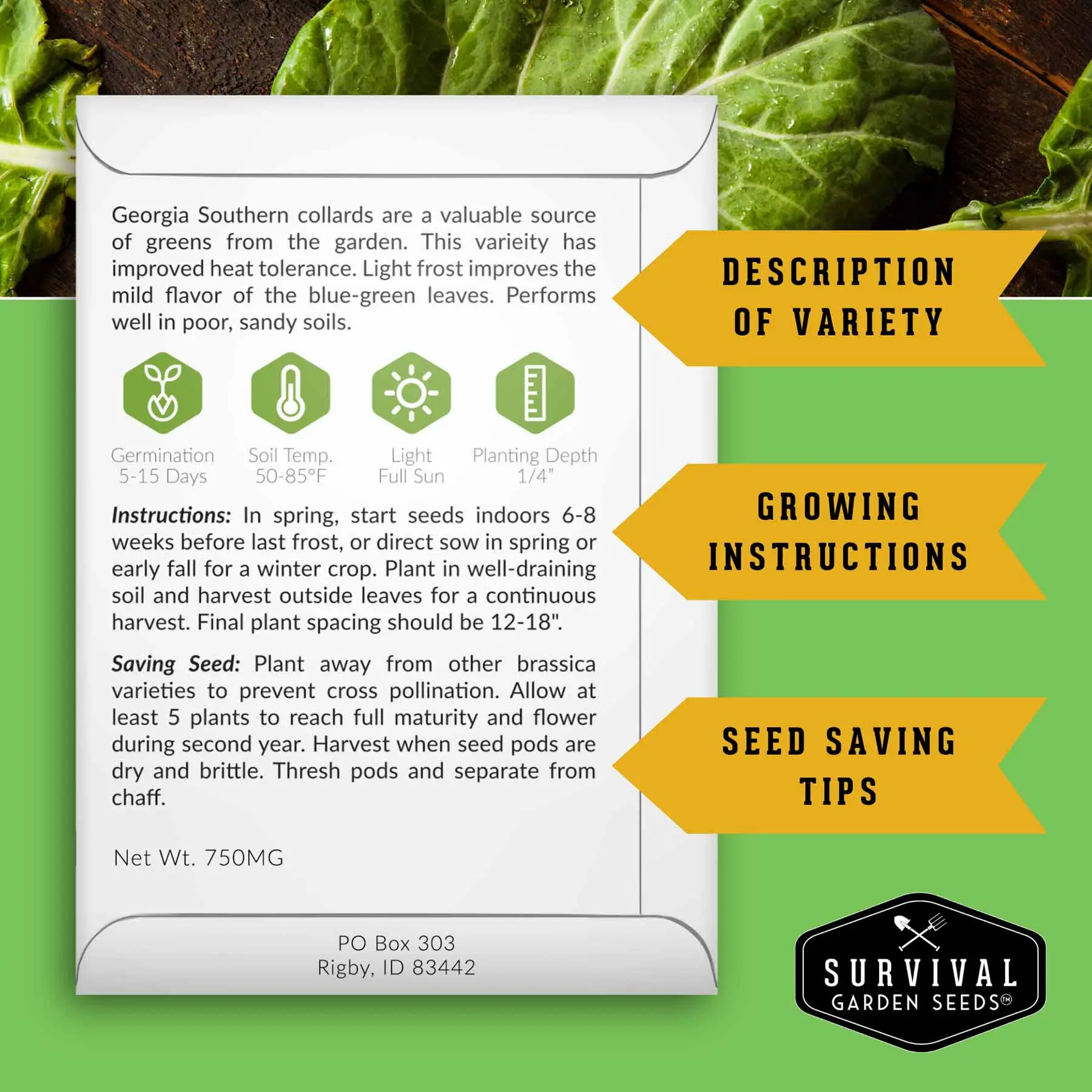 Survival Garden Seeds Georgia Southern Collards are a soul food staple. These nutritious greens add flavor and variety to winter, when fresh flavor can be hard to come by.