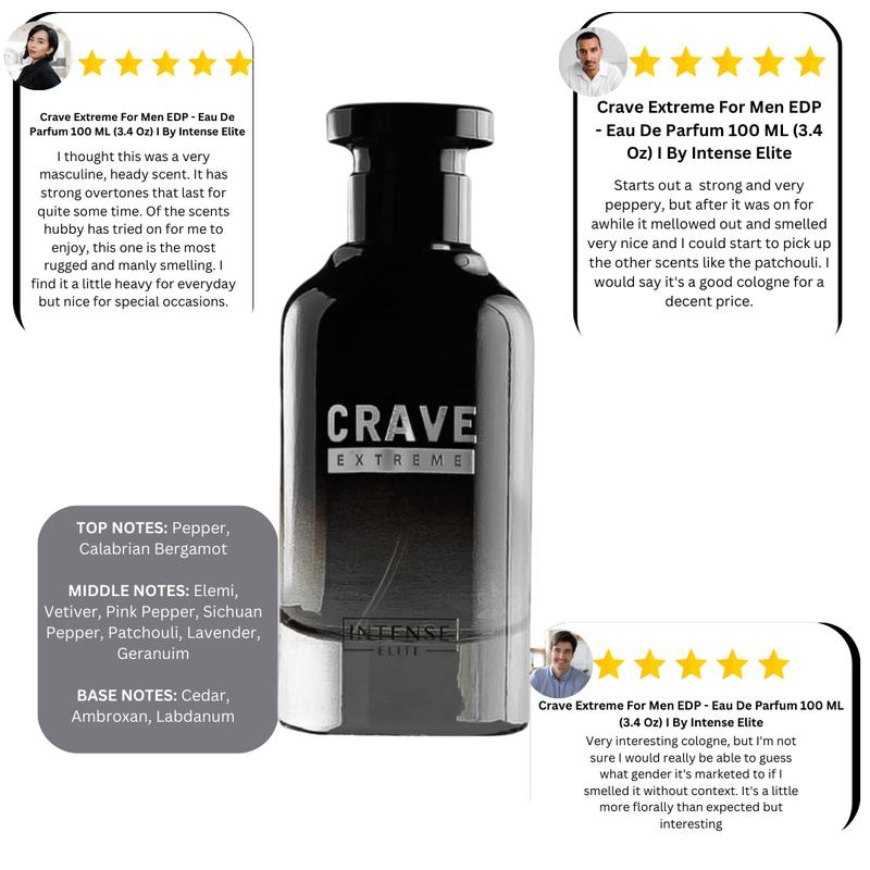 ·ABOUT Crave Extreme: A masculine lighter occidental fragrance, which is perfect if you want a memorable perfume without it being too strong or intense. These best perfumes for men smells beautiful, indulgent, and luxurious. It is accentuated with the spicy notes of Pepper and Calabrian Bergamot proceeded with a multifaceted scent of Elemi, Vetiver, Pink Pepper, Sichuan Pepper, Patchouli, Lavender, and Geranium. All these ending on a sweet-earthy, woody, musky combination of Cedar, Ambroxan, and Labdanum.
