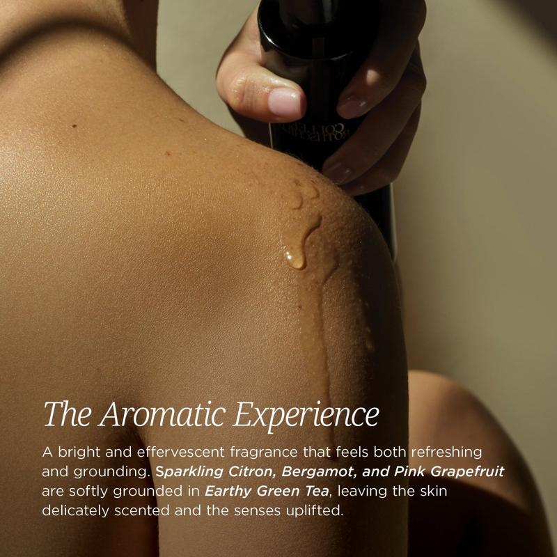 Infused with a lightly aromatic blend of sparkling citron, bergamot, pink grapefruit, and earthy green notes, the signature scent envelops the senses in a veil of freshness and tranquility - uplifting yet beautifully understated