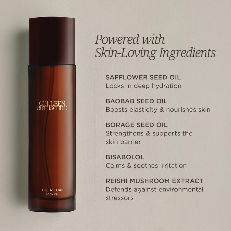 THE RITUAL BODY OIL is more than a glow enhancer - it’s daily care for the skin below your chin. Just like your face, your body is prone to dehydration, fine lines, uneven tone, and rough texture, and deserves the same level of care.