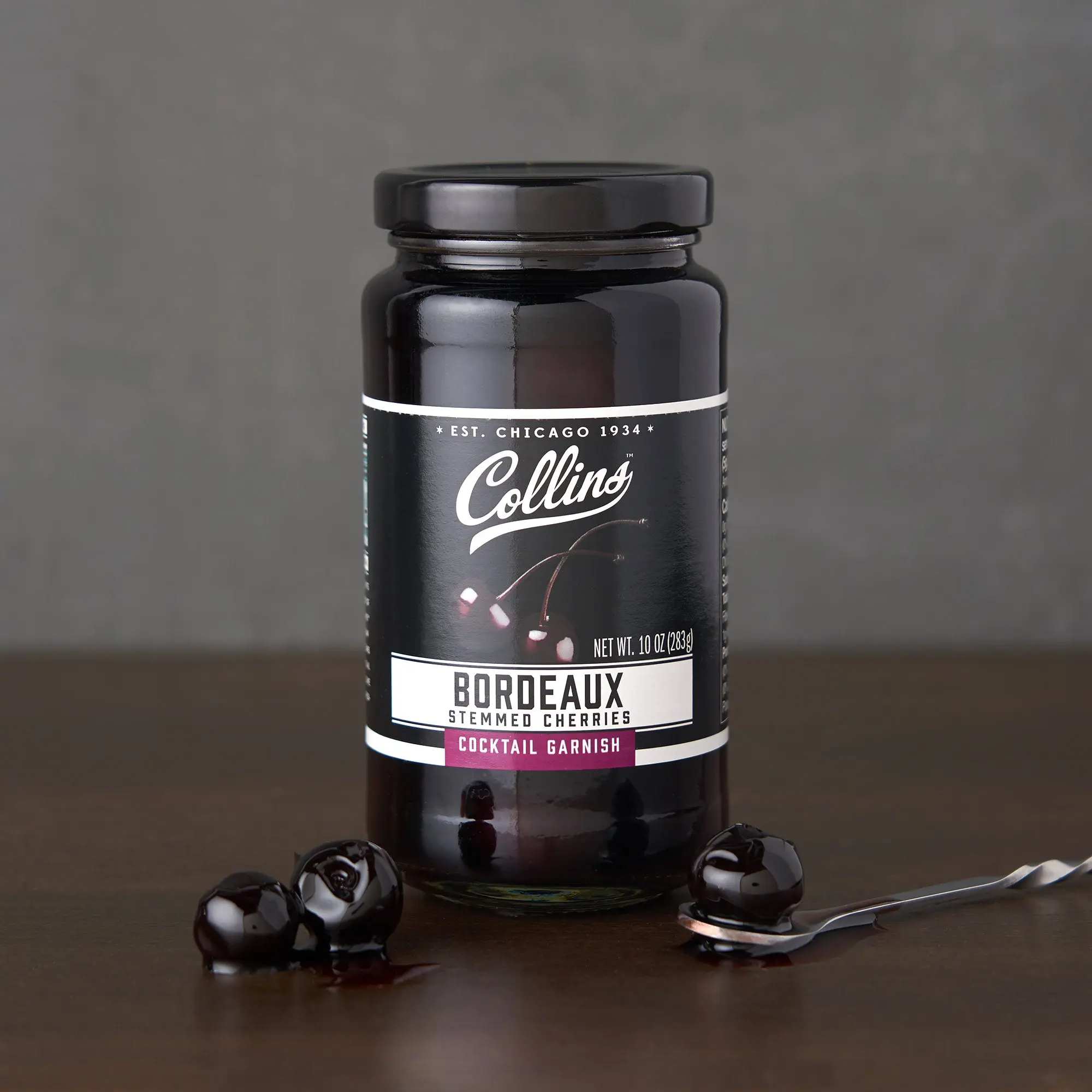 Collins Bordeaux cherries have a darker hue and richer color than the usual bright red maraschino cherries. This gives them a refined, upscale look that you might expect to find at the classiest cocktail bar. Try out Collins stemmed Bordeaux cocktail cherries as a garnish for an Old Fashioned or Manhattan.