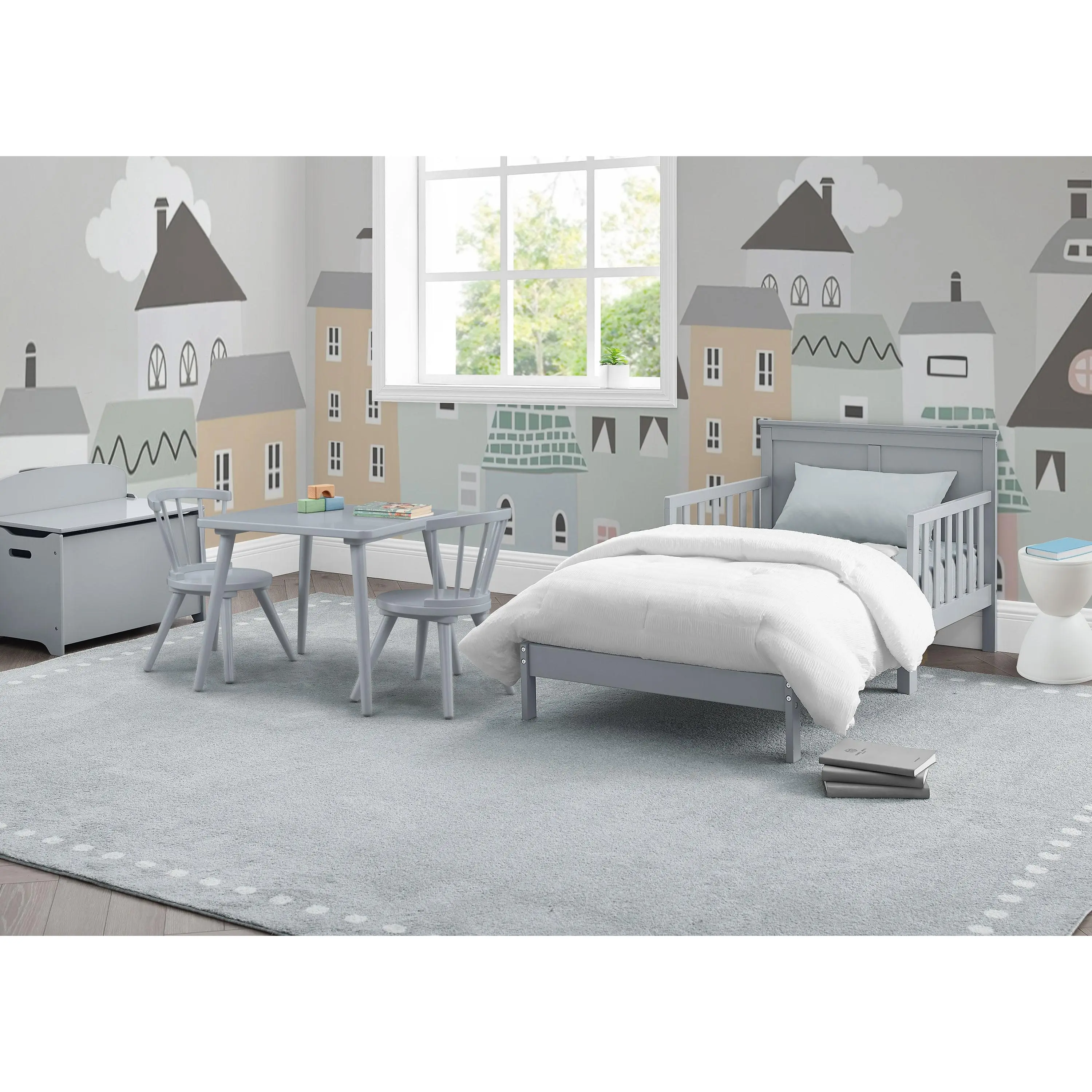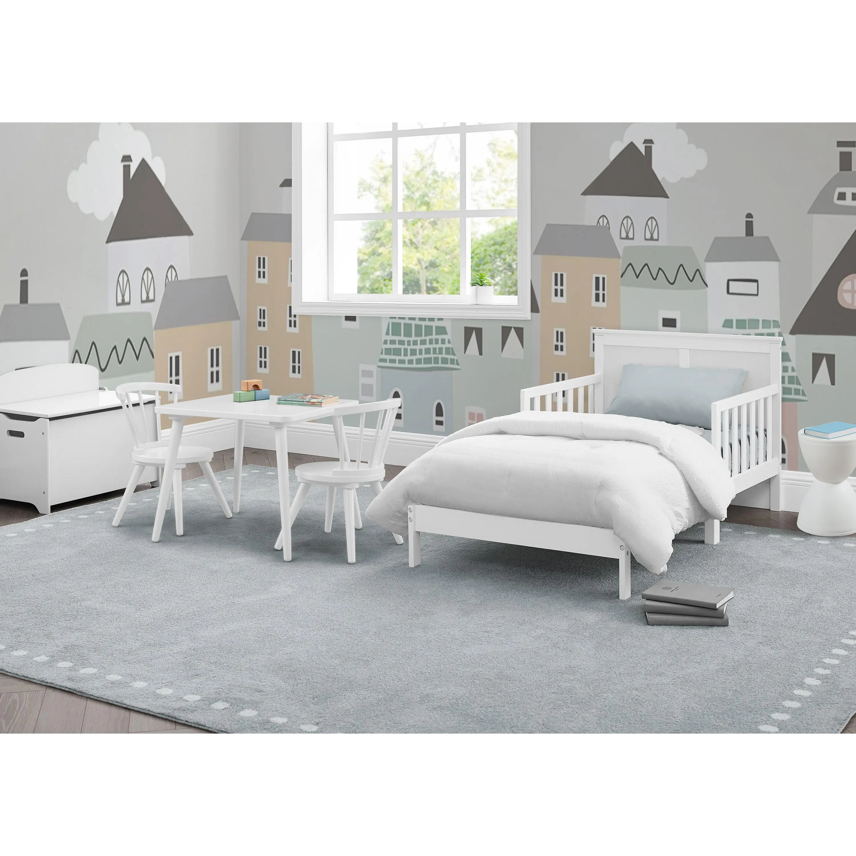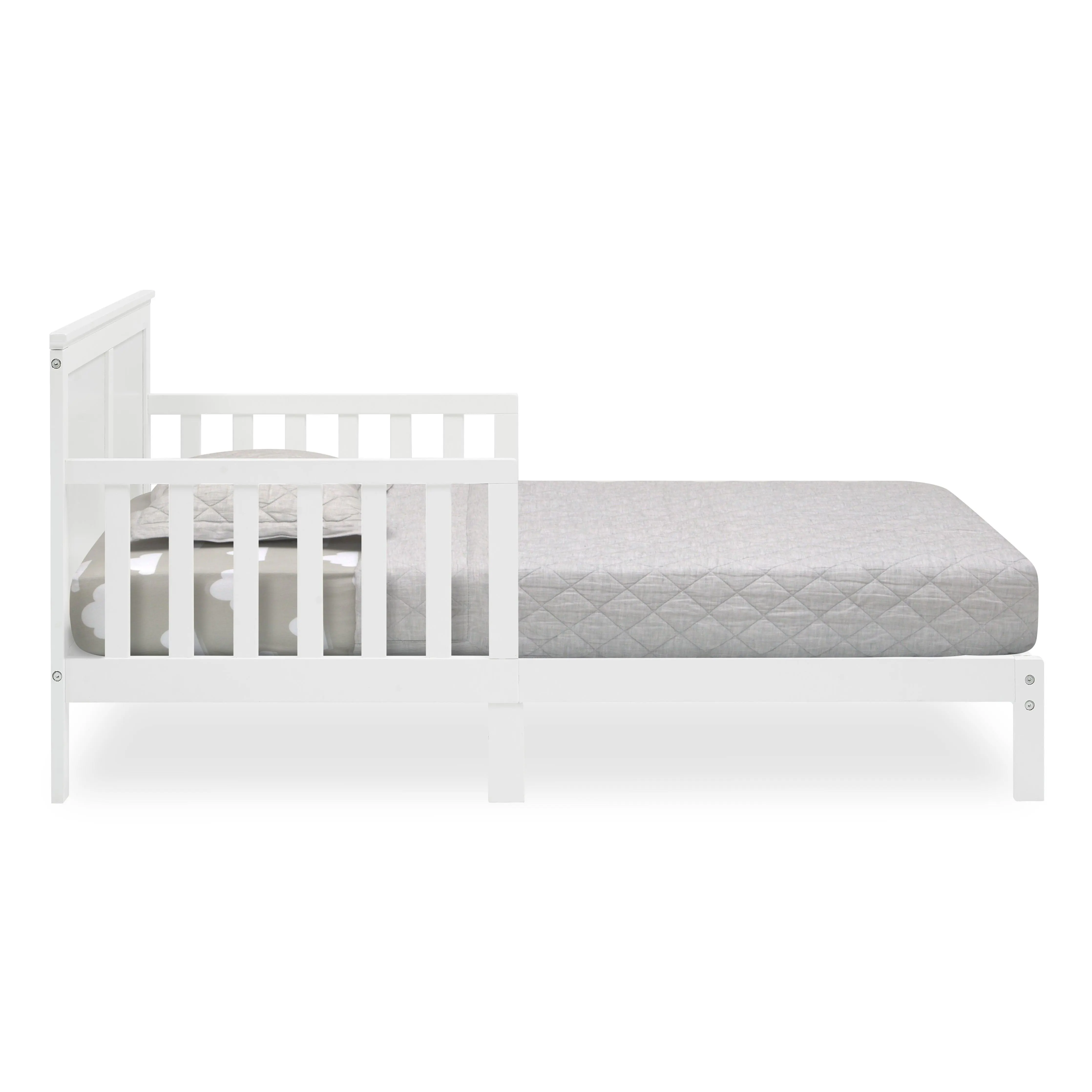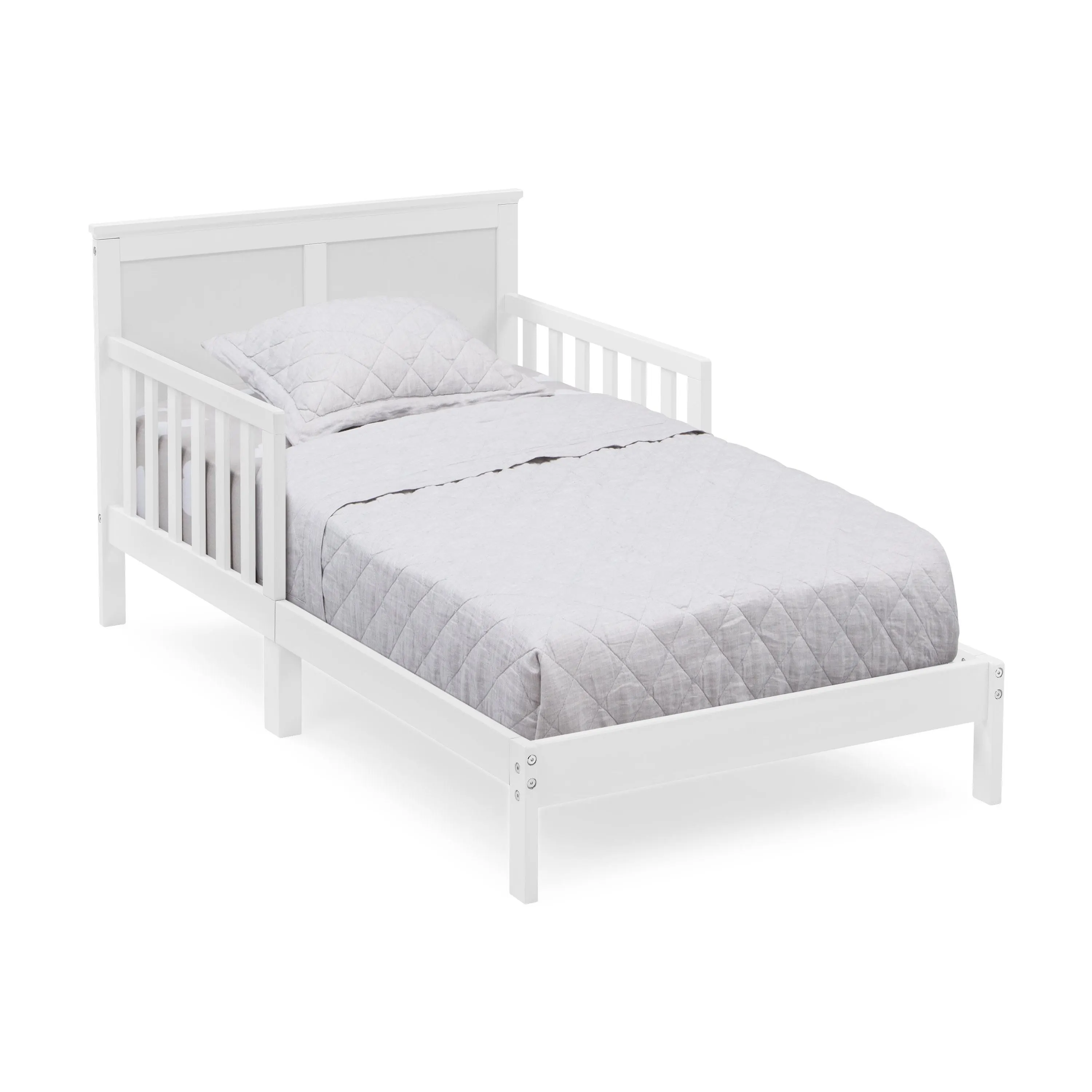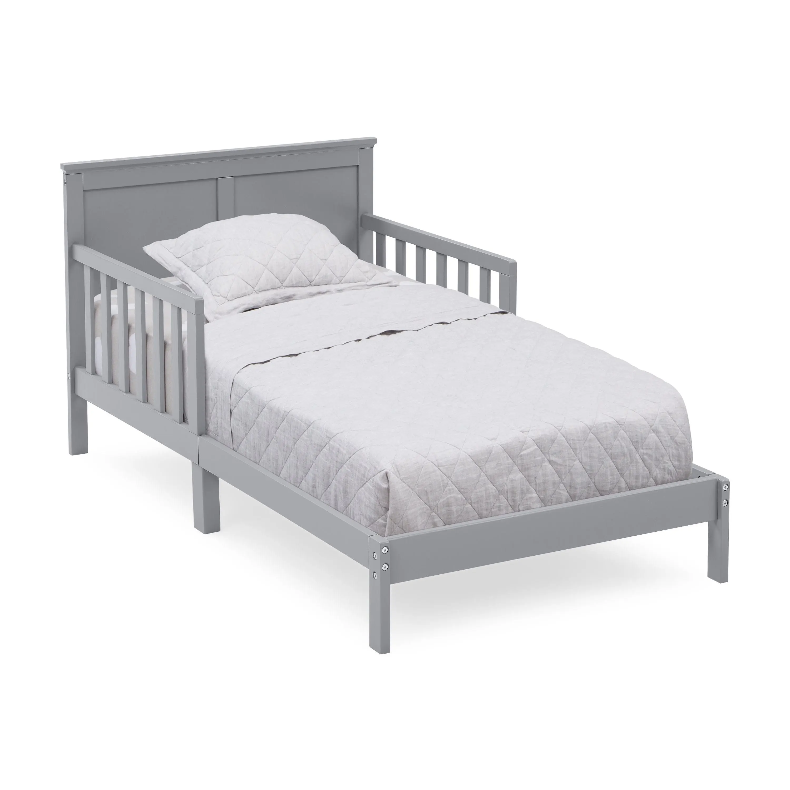 Add timeless style to your child’s bedroom with the Collins Wood Toddler Bed by Delta Children. The bed’s tall headboard with decorative molding creates a cozy oasis for your little one. The perfect choice for your growing child, this toddler bed is extremely safe with its two attached guardrails and a low height that makes it easy for kids to get in and out on their own. Mattresses not included.