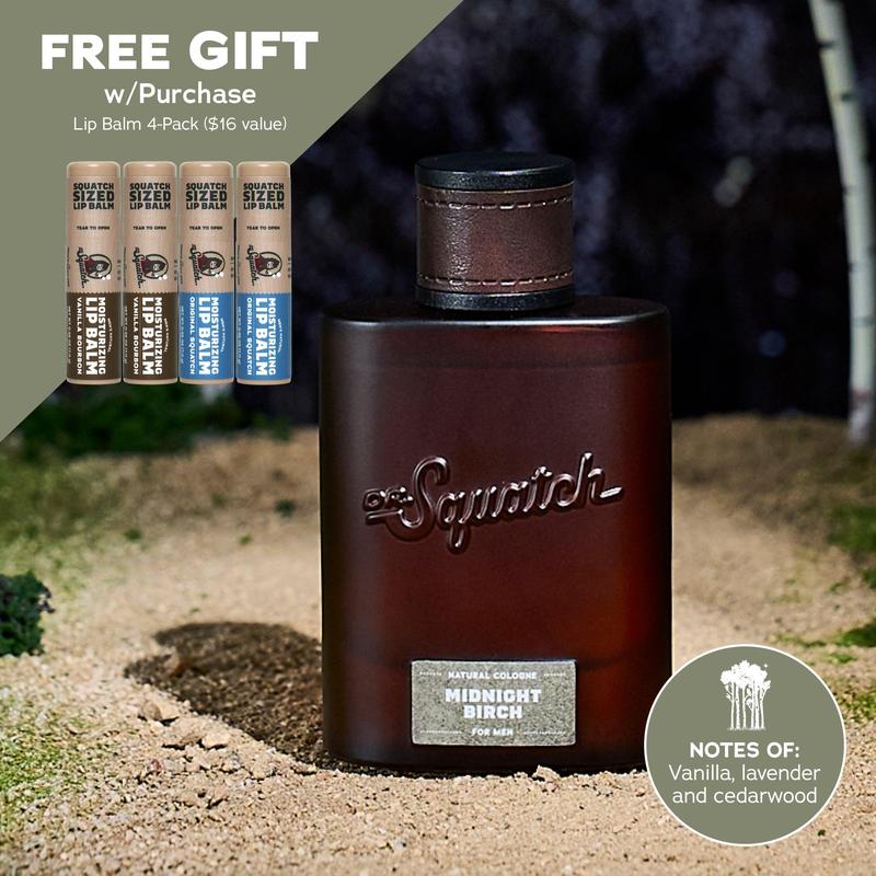 Dr. Squatch cologne is formulated for men with no harmful ingredients. The cologne provides a long last scent with captivating scents. Order includes a FREE gift with purchase of 4-pack lip balm.