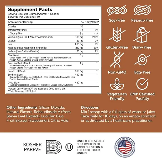Made in the USA using state-of-the-art GMP certified facilities, ensuring potency and purity. Free from gluten, dairy, soy, preservatives, and artificial ingredients, our formulas are as wholesome as they are effective. 3.5 oz jar for cleanse support.